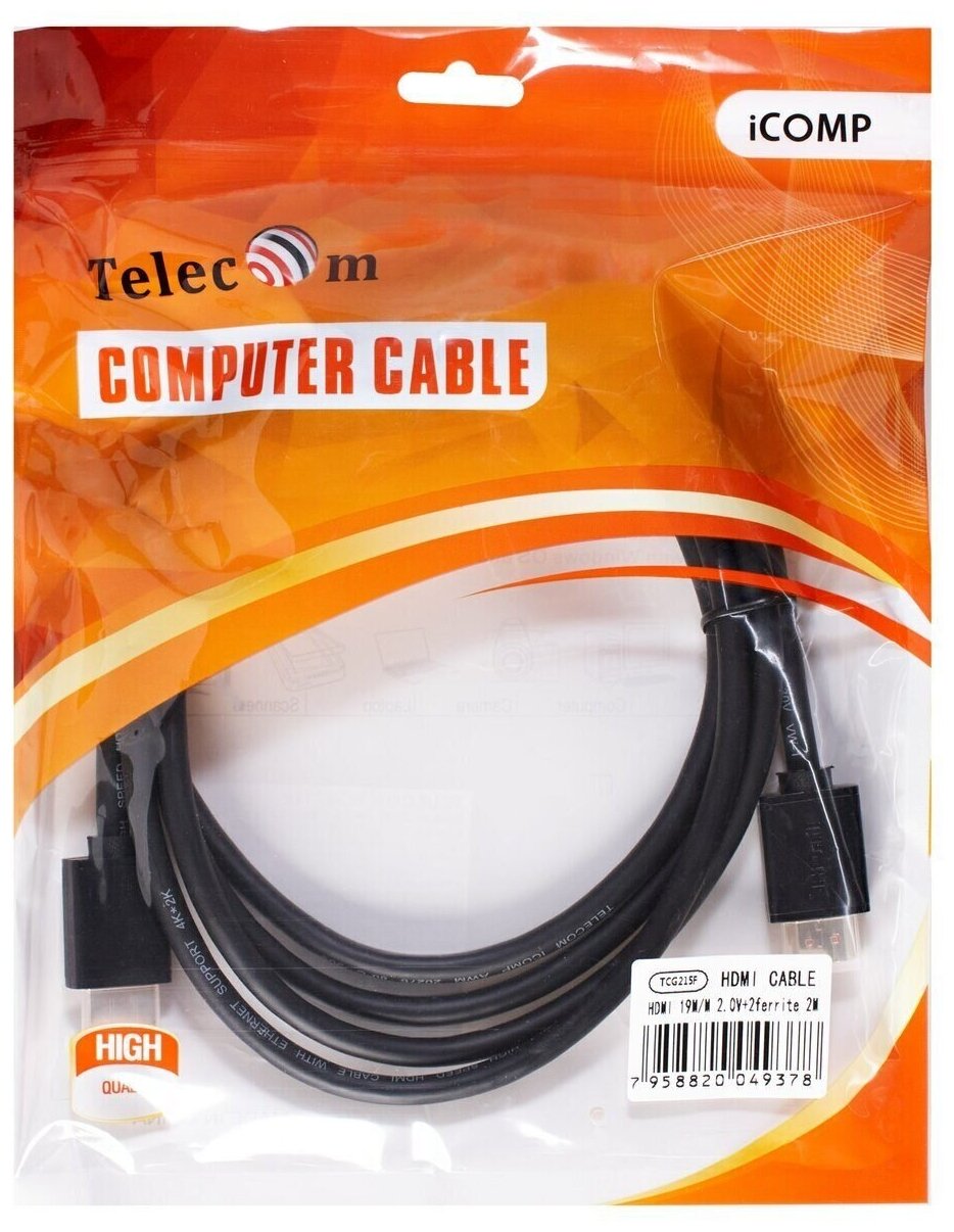 Кабель HDMI-19M --- HDMI-19M ver 2.0+3D/Ethernet 5m 2 фильтраTelecom <TCG215F-5M> VCOM Кабель Telecom HDMI (m)/HDMI (m) - 5 м (TCG215F-5M)