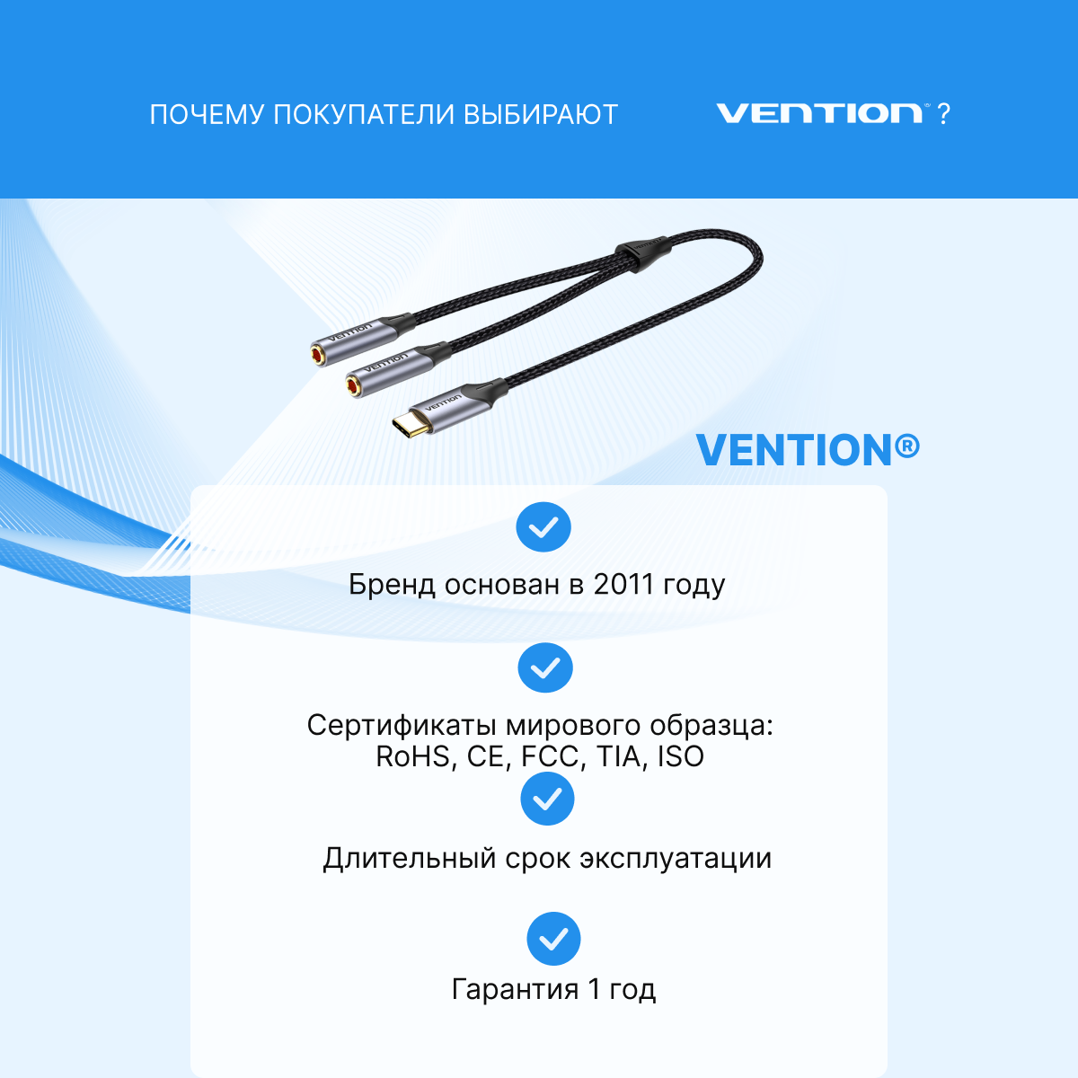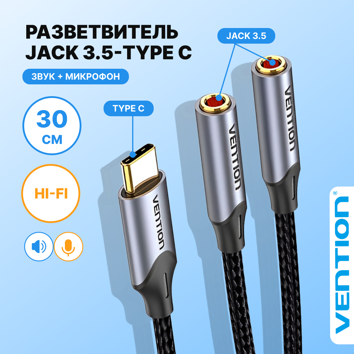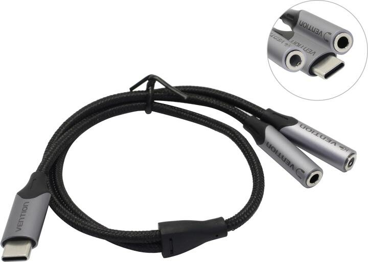 Переходник-разветвитель Vention гибкий USB-C M/Jack 3.5 mm F x 2 (Аудио+Микрофон) - 0.3м Vention BGPHY