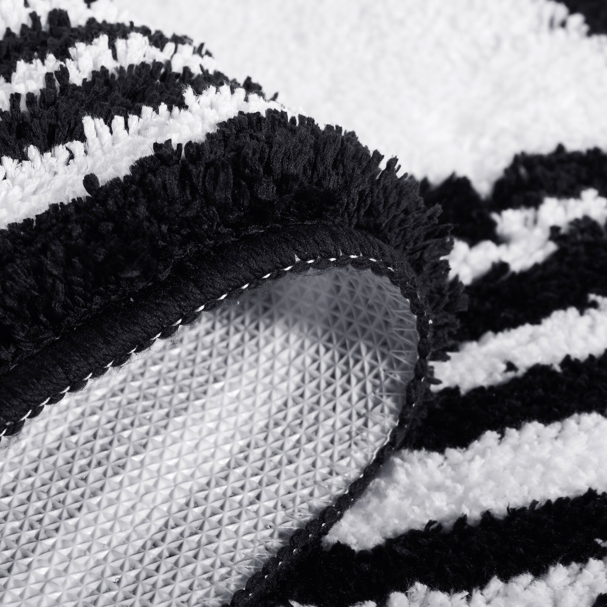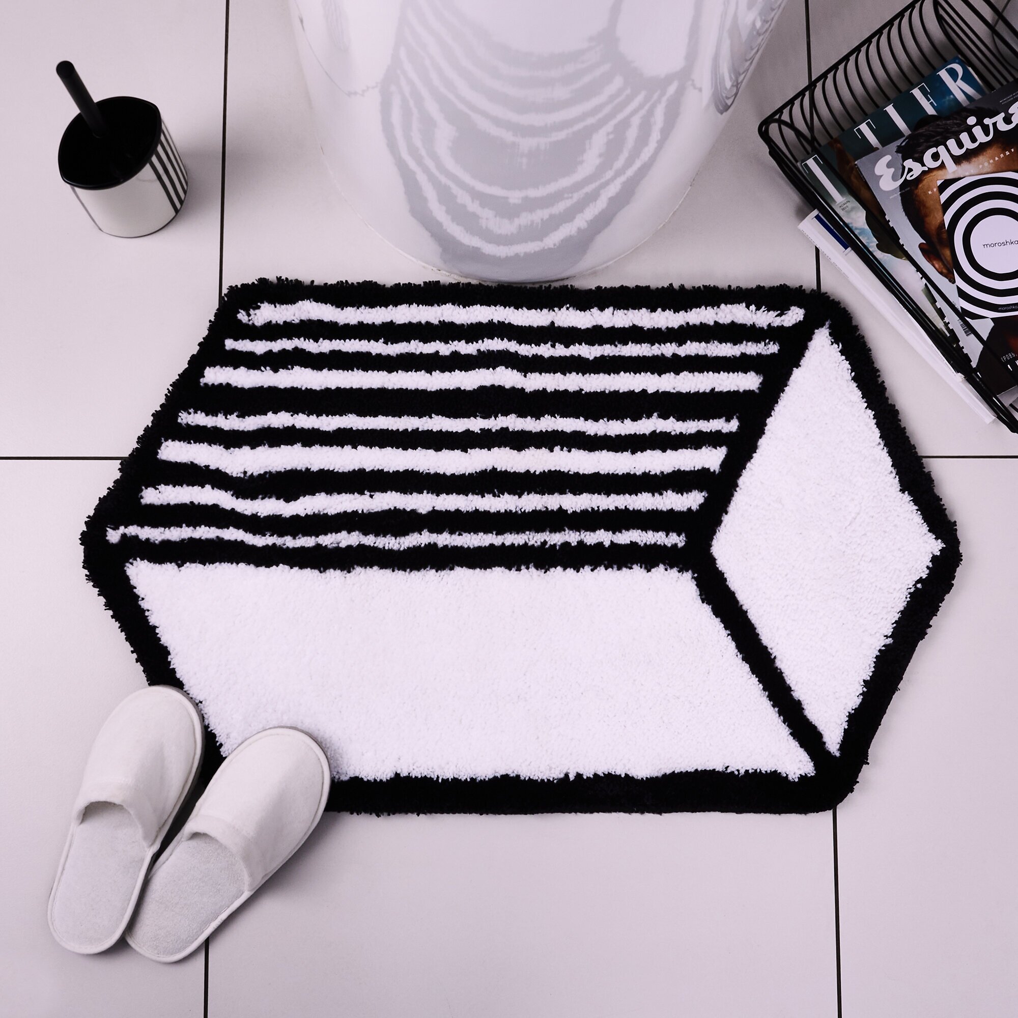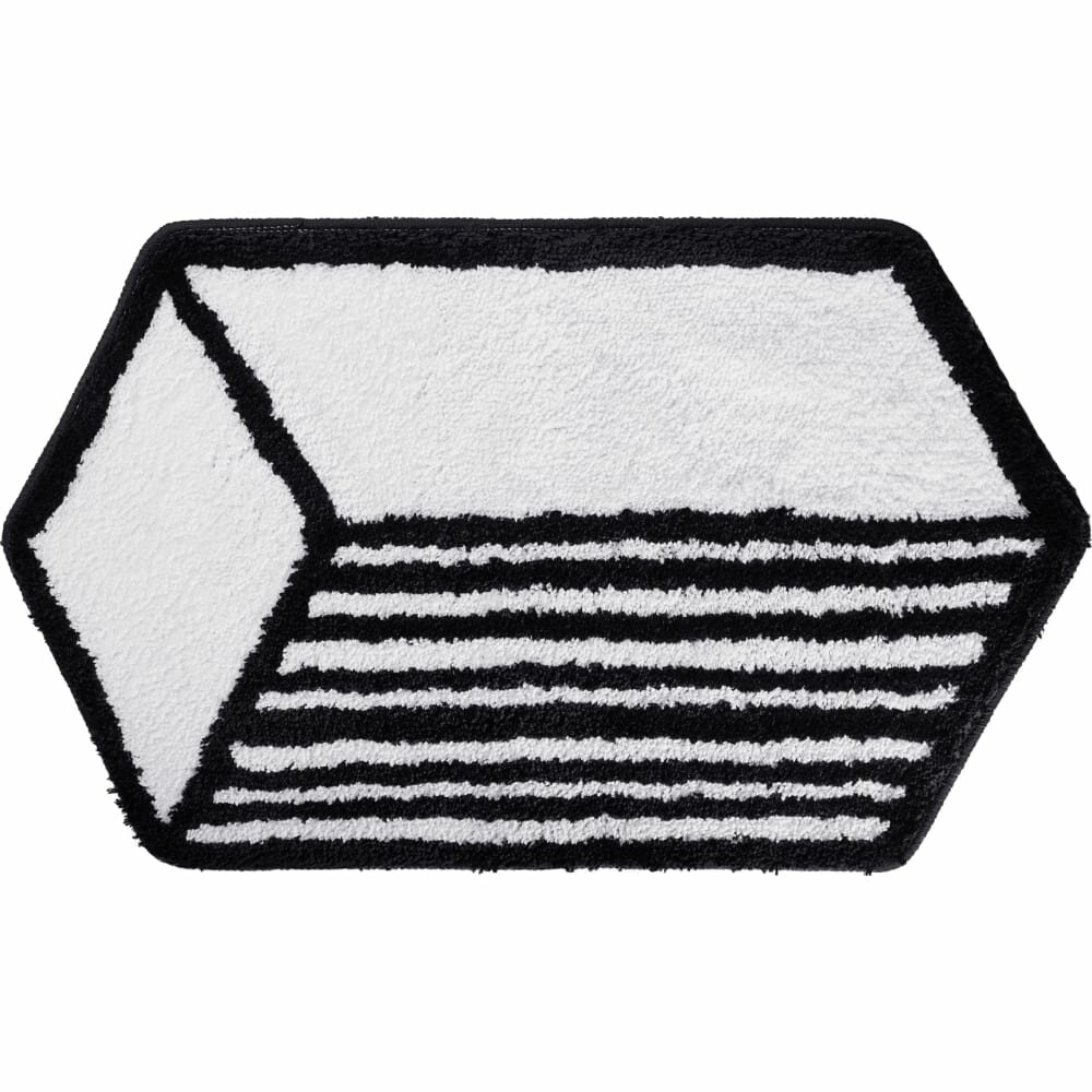 Чёрно-белый коврик на пол в ванную 50х85 см. является частью коллекции Grafica. Изделие отличается особой мягкостью и обеспечивает приятные тактильные ощущения. Обратная сторона коврика имеет антискользящее покрытие, подходящее для системы теплых полов. Изделие с необычным рисунком в стиле 3D-иллюзии придаст пространству индивидуальный стиль, а благодаря монохромной палитре легко впишется в интерьер любой ванной комнаты. Коврик идеально сочетается с другими аксессуарами из коллекции Grafica