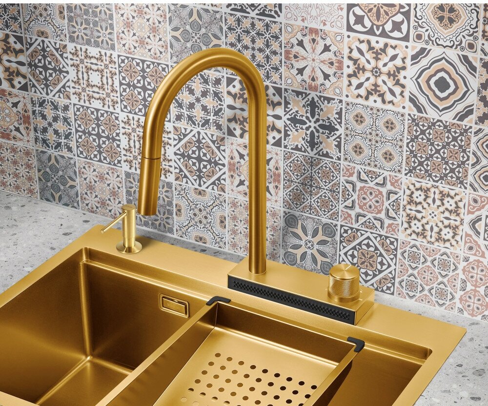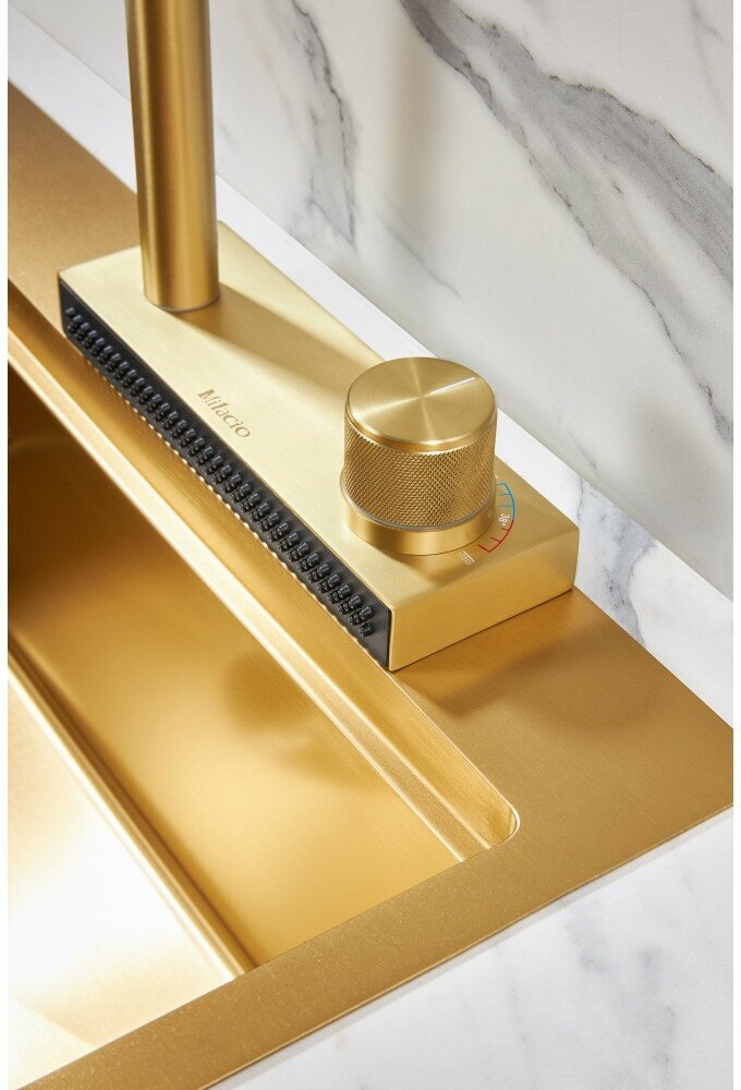 Смеситель для кухонной мойки Milacio Ultra MCU.556.GD из нержавеющей стали с вытяжной лейкой и каскадным душем - стильное и инновационное решение для вашей кухни. Современный дизайн в сочетании с высочайшим качеством обеспечат изделию сохранение безупречного внешнего вида и функциональности на весь срок эксплуатации.
