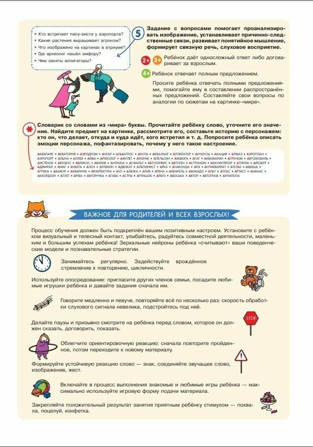 Нейроазбука развивает пространственное, понятийное, логическое и образное мышление, внимание, восприятие, воображение, фразовую речь и эмоциональный интеллект. Многозадачность заданий и многослойность иллюстраций позволяет заниматься по книге с 2 до 6 лет. Каждому возрасту соответствуют задания со своим уровнем сложности. В гиде для родителей описано, как заниматься с ребёнком по мере его взросления. С "Виммельбуквами" к школе активный словарь ребёнка будет насчитывать более 3000 слов.