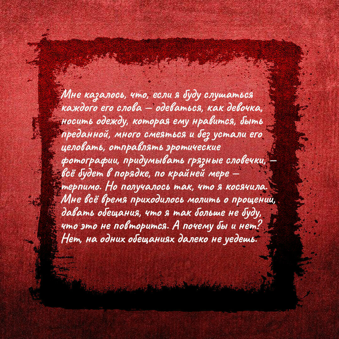 "Физиологический и оттого не очень приятный текст о насилии - эмоциональной ловушке, в которую легко попасть, когда тебе двадцать, и ты думаешь о любви, как о вещи, которую нужно заслужить, вымолить и выстрадать. Текст, в котором нет счастья и выхода, и оттого в нем душно - хочется разбить окно и попросить героиню подышать как можно чаще, а потом ноги в руки и бежать. Прочтите и никогда не падайте в эту пропасть". - Ксения Буржская, писательница.