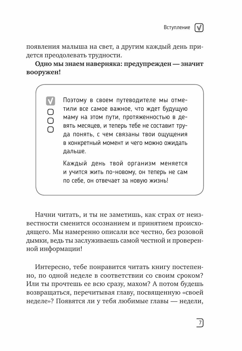Вы можете прочесть всю книгу целиком, чтобы знать заранее, что вас ждет дальше, или читать по главам, соответствующим вашей неделе беременности, чтобы сконцентрироваться на своем состоянии.