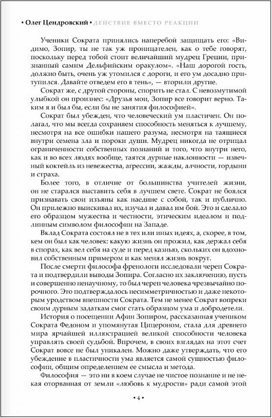 Философ, нейропсихолог, кандидат философских наук Олег Цендровский в книге «Действие вместо реакции» исследует устройство человеческого мозга и последовательно доказывает, его неограниченные возможности.
