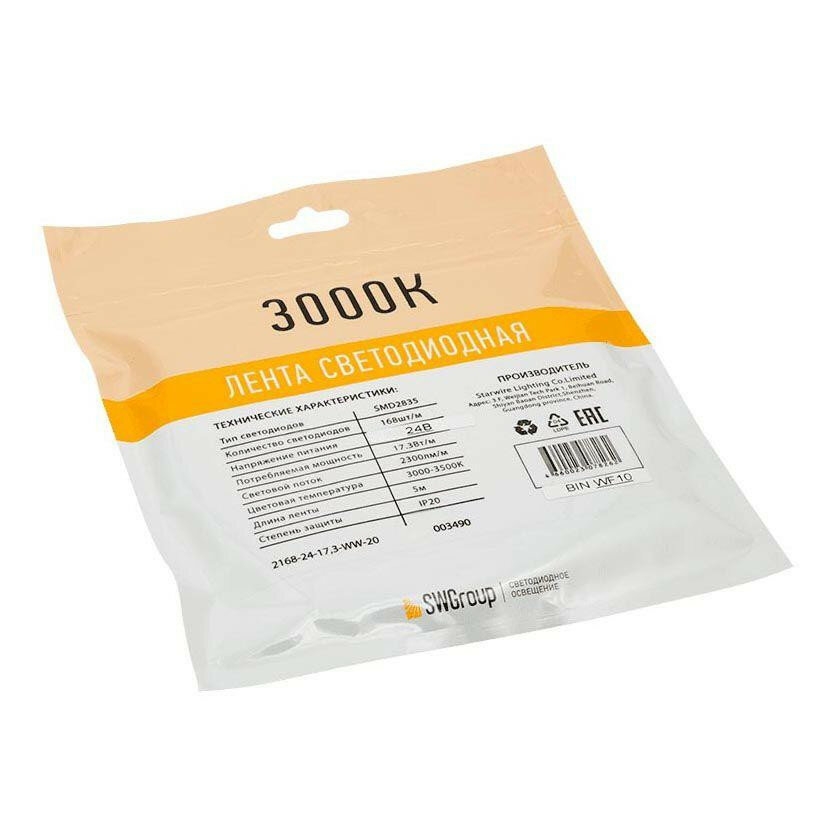 Светодиодная лента 24V 3000-3500K 173w/m 5m SWG 003490 003490 SWG2P168