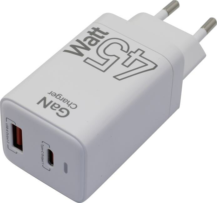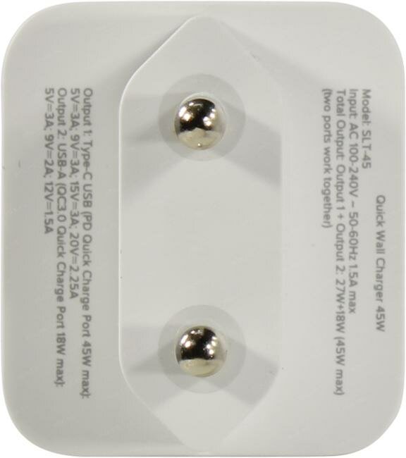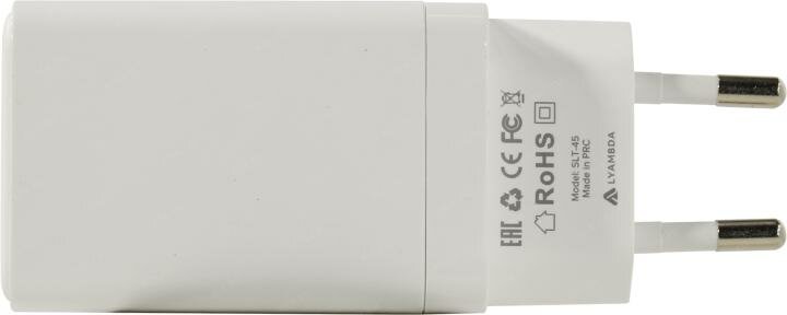 Зарядное устройство сетевое Lyambda 45Вт GaN c 2-мя выходами (PD+QC3.0) SLT-45