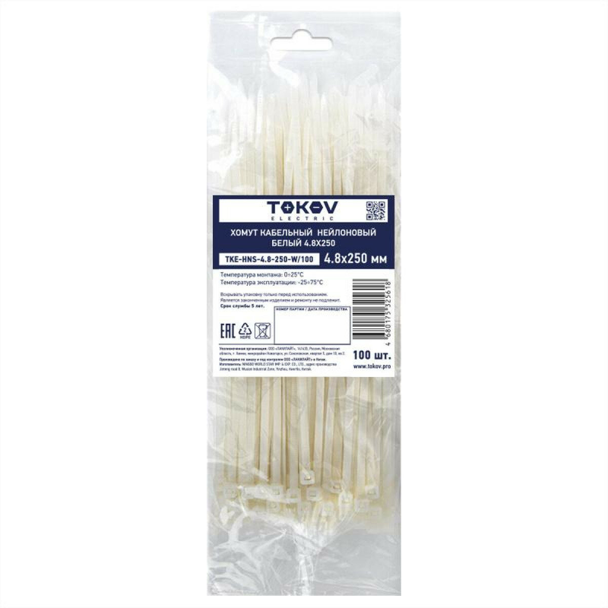 Хомут TOKOV ELECTRIC кабельный нейлоновый бел. 4.8х250 (уп.100шт) TKE-HNS-4.8-250-W/100
