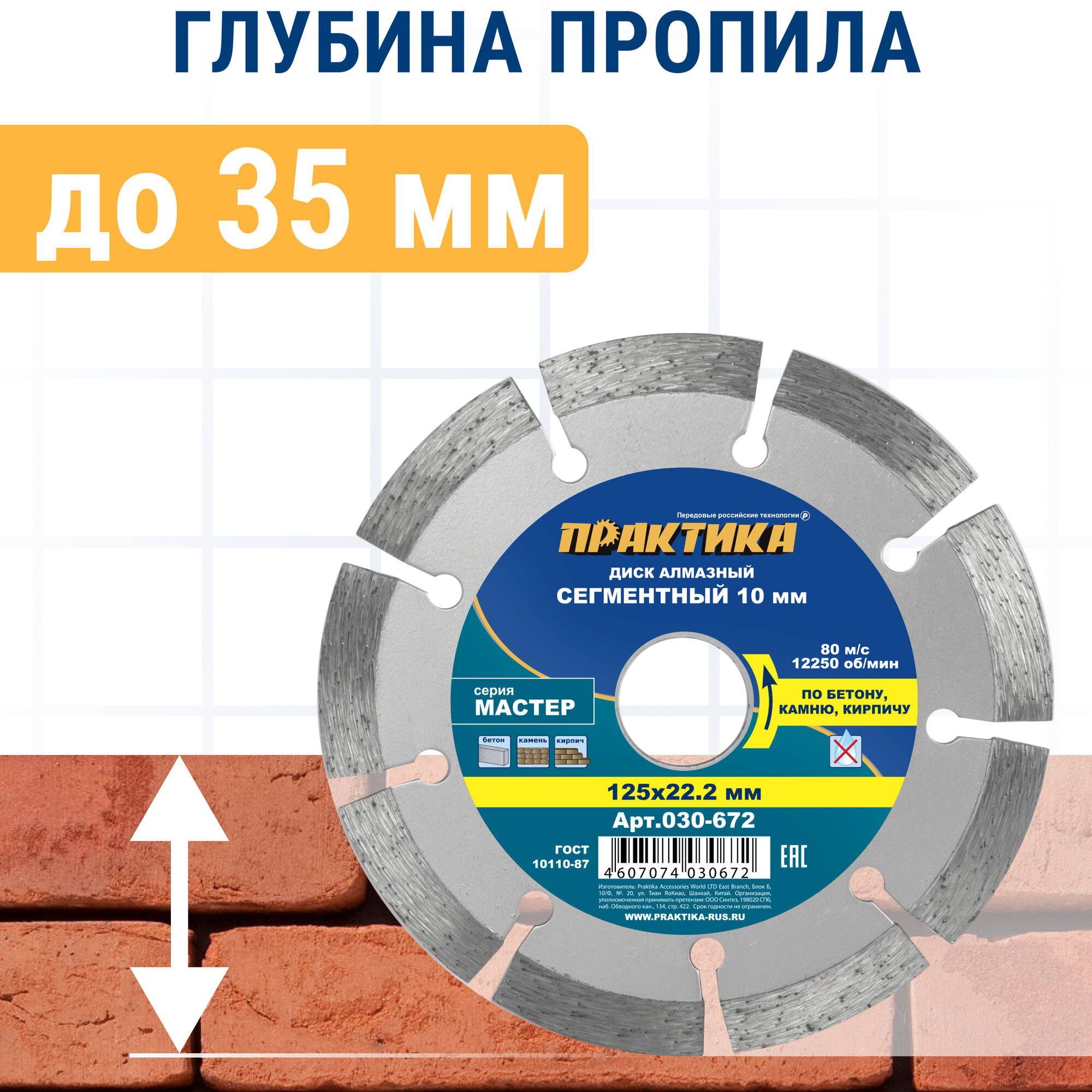 Сервис сравнения цен СкидкаГИД предлагает сравнить цены на товар «диск алмазный ПРАКТИКА Мастер 125х22х10мм сегментный (030-672)»