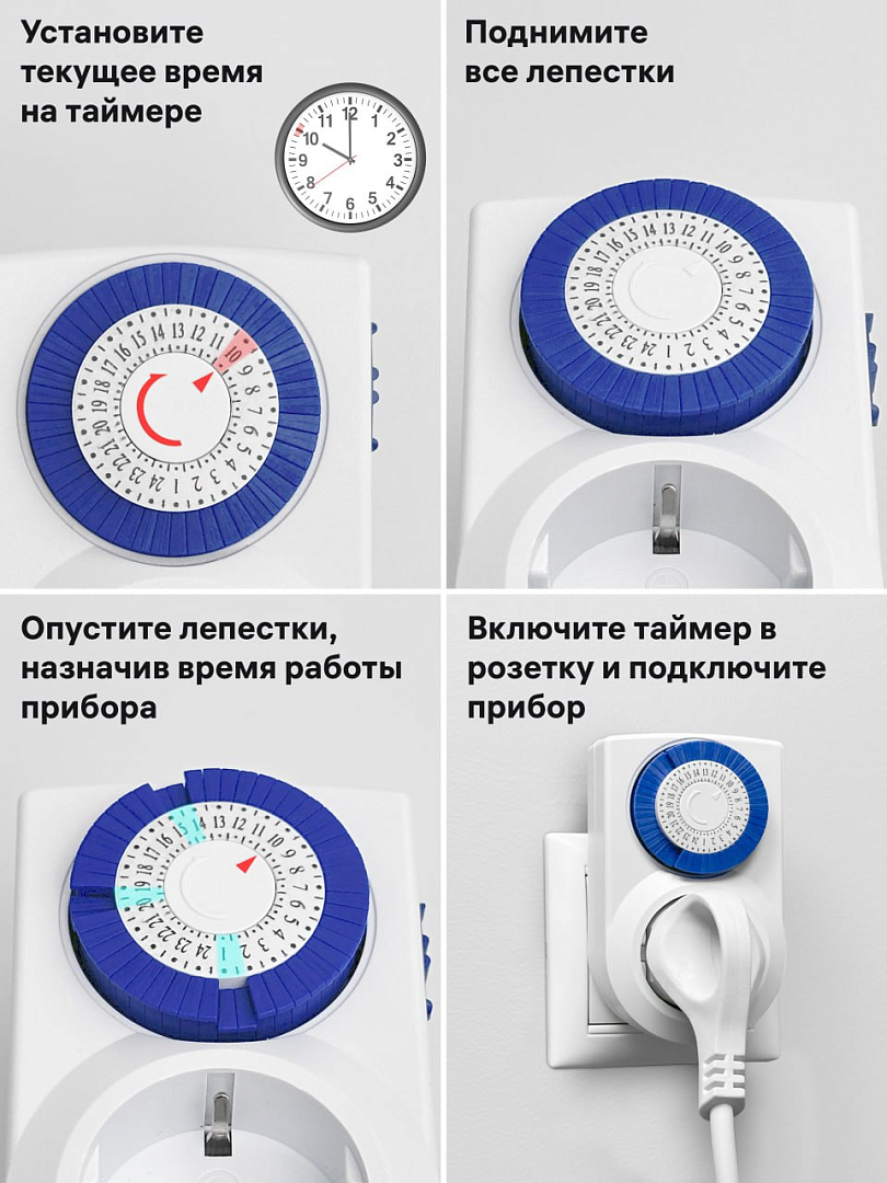 Механический суточный таймер REV предназначен для включения/отключения электроприборов в точно указанное время. Устройство представляет собой переходник, через который любое электрическое устройство подключается к электросети. Использование таймера делает работу электроприборов максимально безопасной и позволяет экономить электроэнергию.