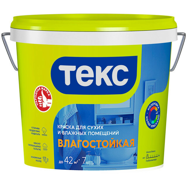 краска акриловая ТЕКС Влагостойкая для сухих и влажных помещений 7кг белая арт.700000519