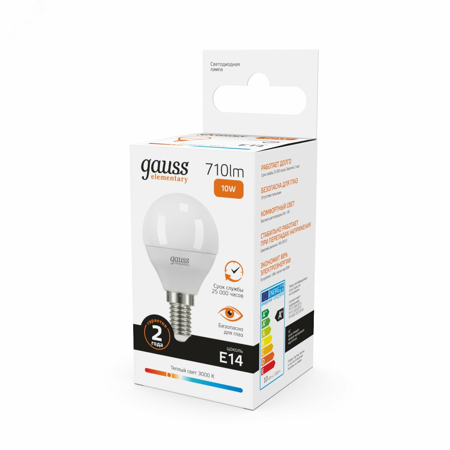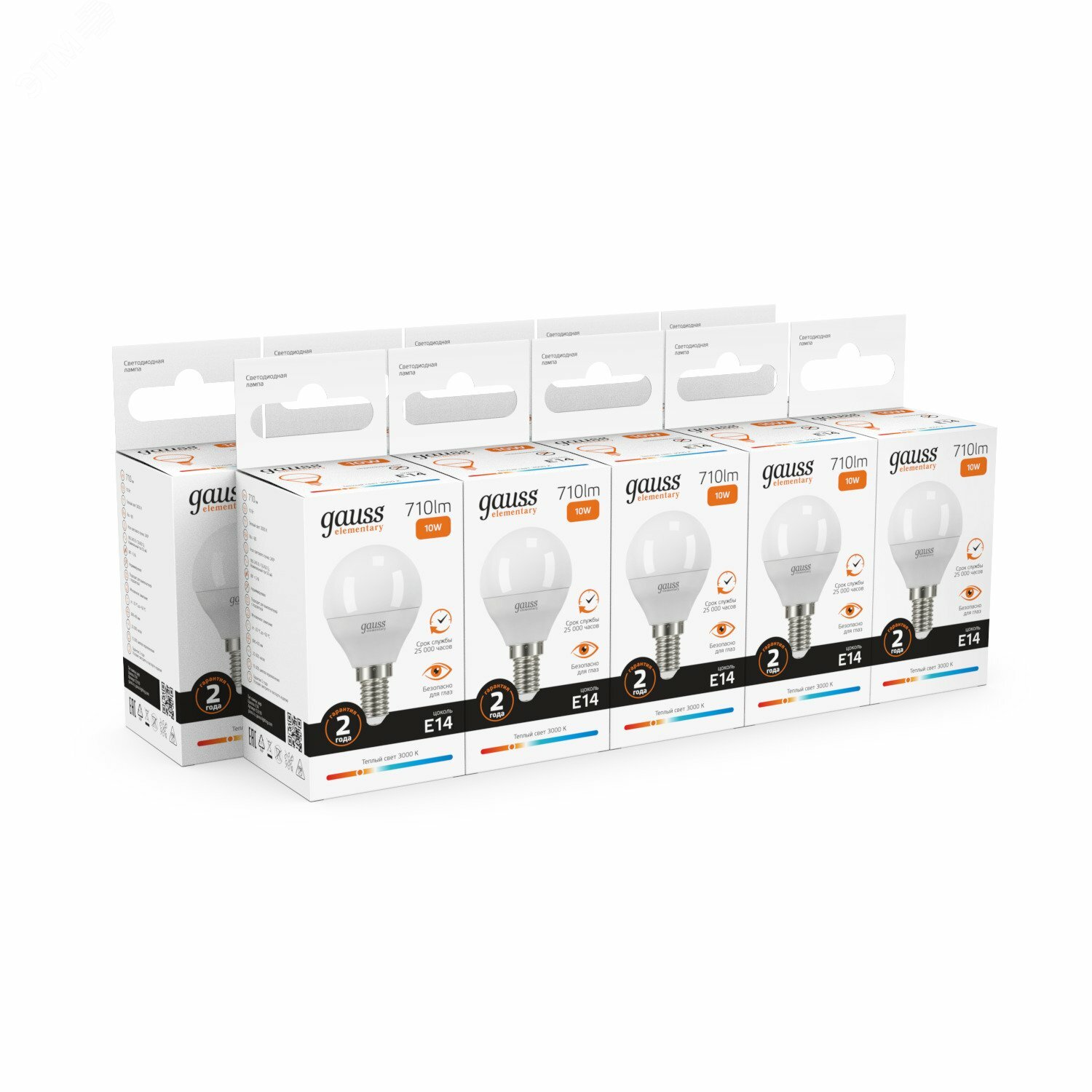лампа GAUSS Elementary 10Вт Е14 LED 710Лм 3000K шар (53110)