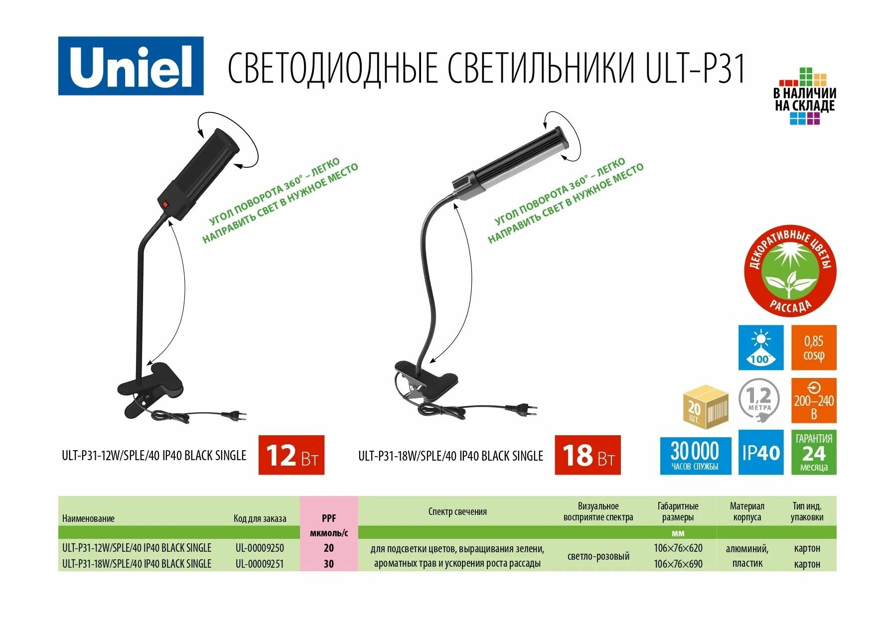 Лампы настольные для растений Uniel »