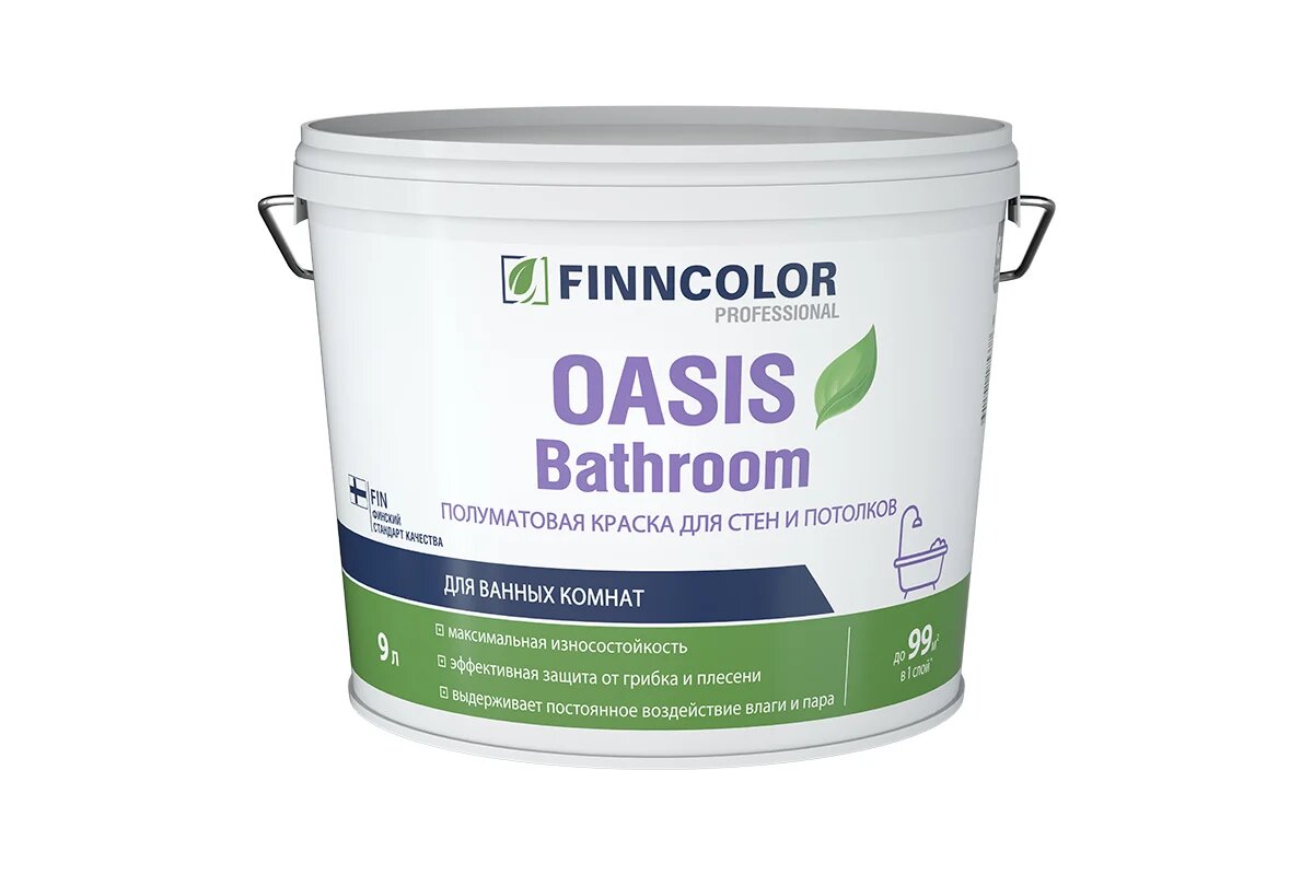 краска акриловая FINNCOLOR Oasis Bathroom база A для стен и потолков 9л белая арт.700009649