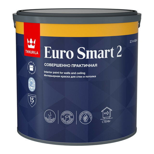 краска акриловая TIKKURILA Euro Smart 2 база A для стен и потолков 27л белая арт.700001103