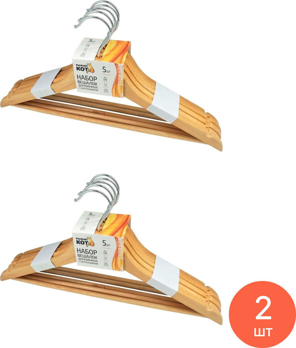 набор вешалок РЫЖИЙ КОТ 5шт 45см универсальные дерево с выемками (007769) (размер: 45х1, 45х1х23)