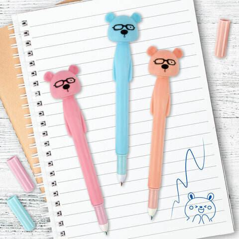 ручка фигурная шариковая ЮНЛАНДИЯ Мишка узел 07мм мягкий силиконовый корпус ассорти синяя (143780)