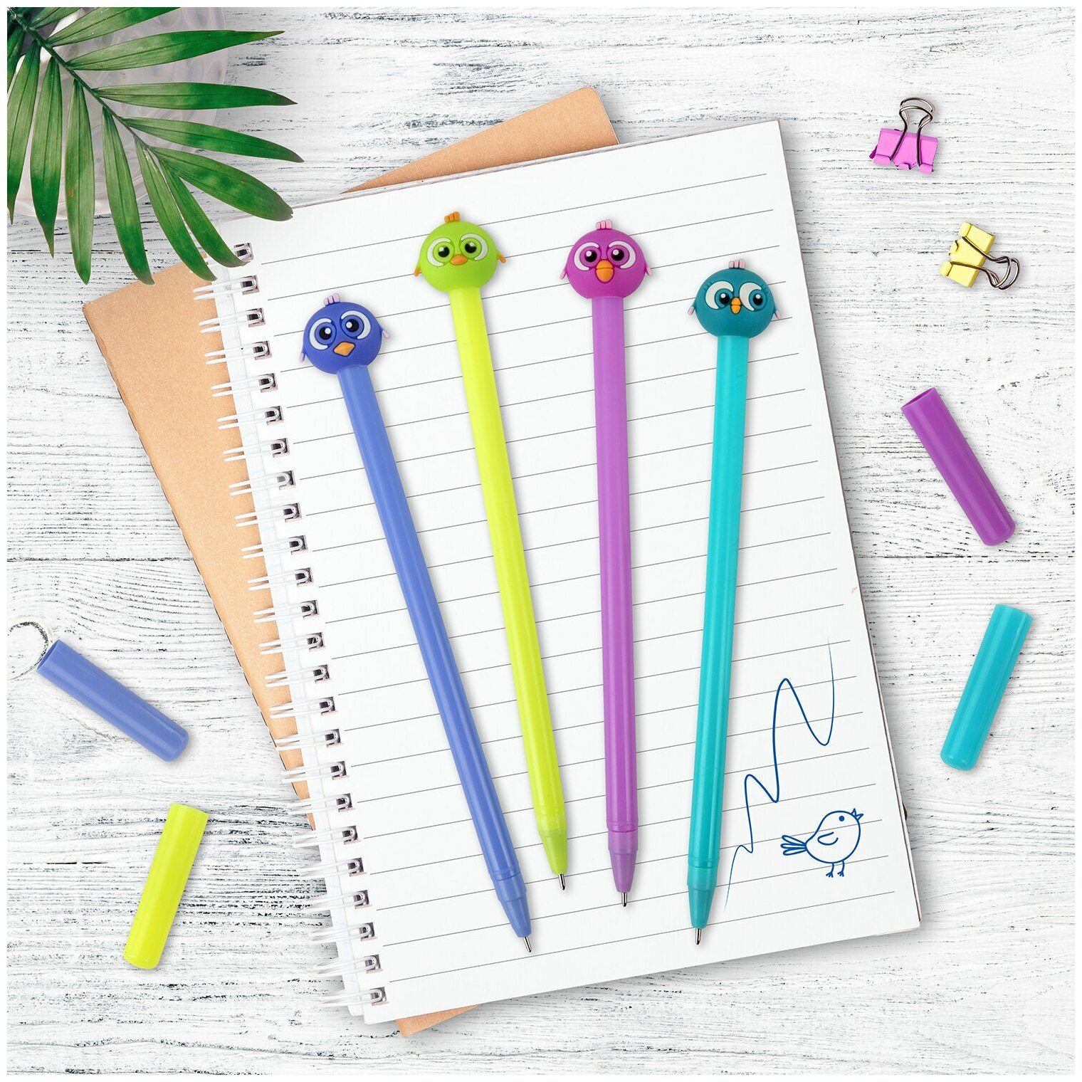 ручка с топпером шариковая ЮНЛАНДИЯ Птенец узел 07мм корпус ассорти синяя (143811)