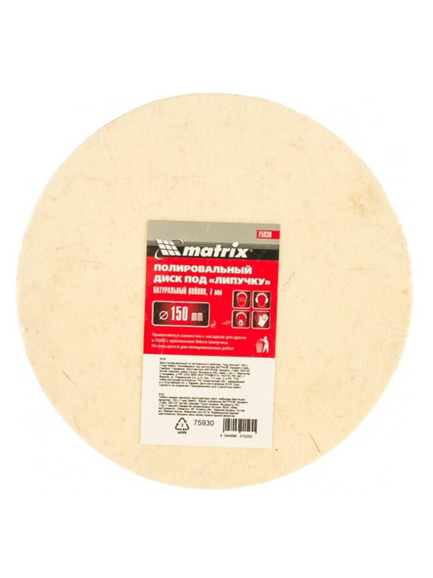 На сегодняшний день товар «круг полировальный MATRIX войлочный на липучке 150мм (75930)» можно купить с кешбеком в 1 магазине: МаксидоМ