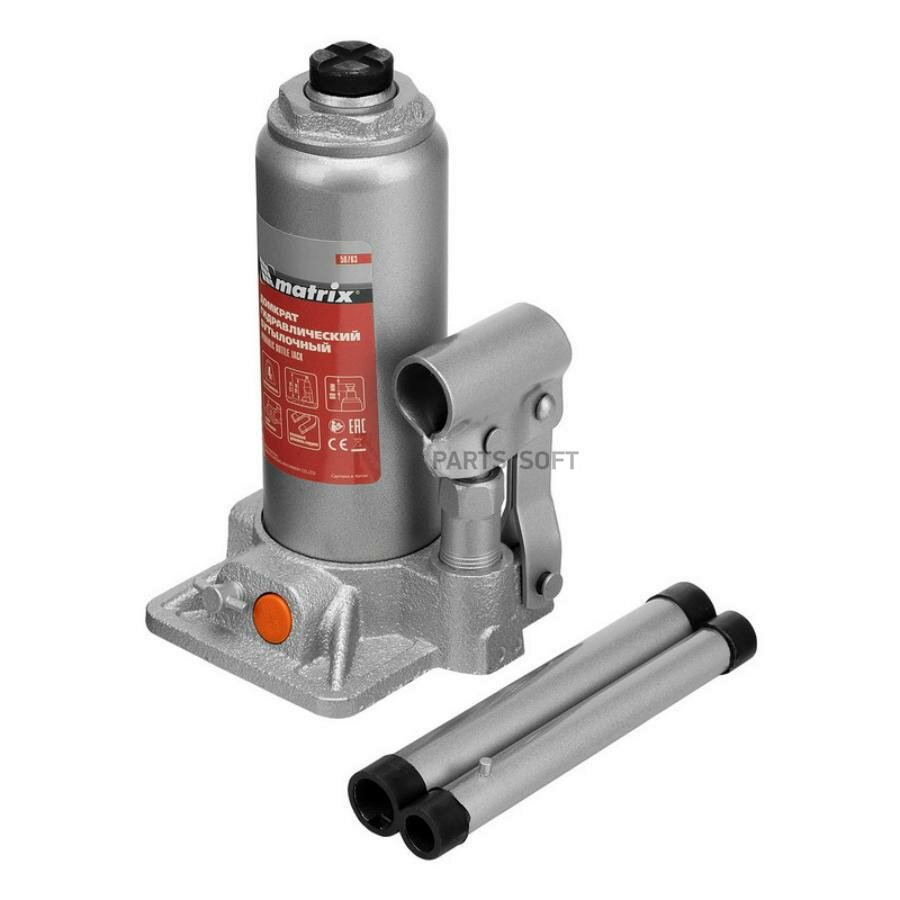 Домкрат гидравлический бутылочный Matrix 50763 предназначен для быстрого поднятия грузов весом до 4 т на высоту 194-372 мм. Он будет полезен автолюбителям и мастерам СТО в качестве полупрофессионального инструмента. Встроенный магнитный уловитель не допускает распространения металлической стружки по домкрату, таким образом обеспечивается защита резиновых уплотнителей от повреждений. Преимущества Защита от перегрузки ∎ домкрат оснащен клапаном безопасности, который не допускает поднятия массы свыше допустимой нормы. Высокий ресурс ∎ домкрат выполнен из прочной коррозионностойкой стали. Разборный корпус ∎ можно отремонтировать домкрат, если возникнет такая необходимость. Вес 3,25 кг ∎ домкрат легко помещается в багажник авто.