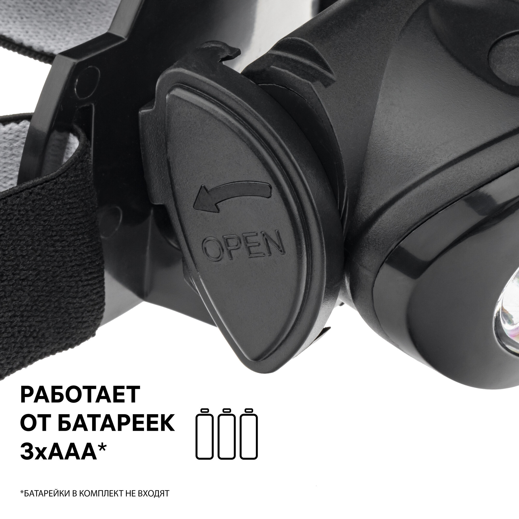 В корпусе данной модели фонарика расположены светодиоды СОВ LED 5 Вт. Он имеет очень яркий рассеянный свет и используется при ближнем освещении, а также применяется при дальнем освещении. Широкие возможности по настройке угла наклона фонарика для удобства работы в любых ситуациях. Надежное крепление на ремешке, позволит Вам с удобством переносить его даже в дальних поездках и походах. Налобный фонарик работает от трех батареек ААА (элементы питания в комплект не входят).