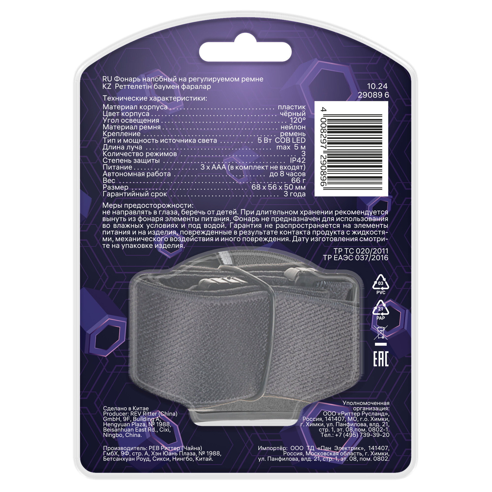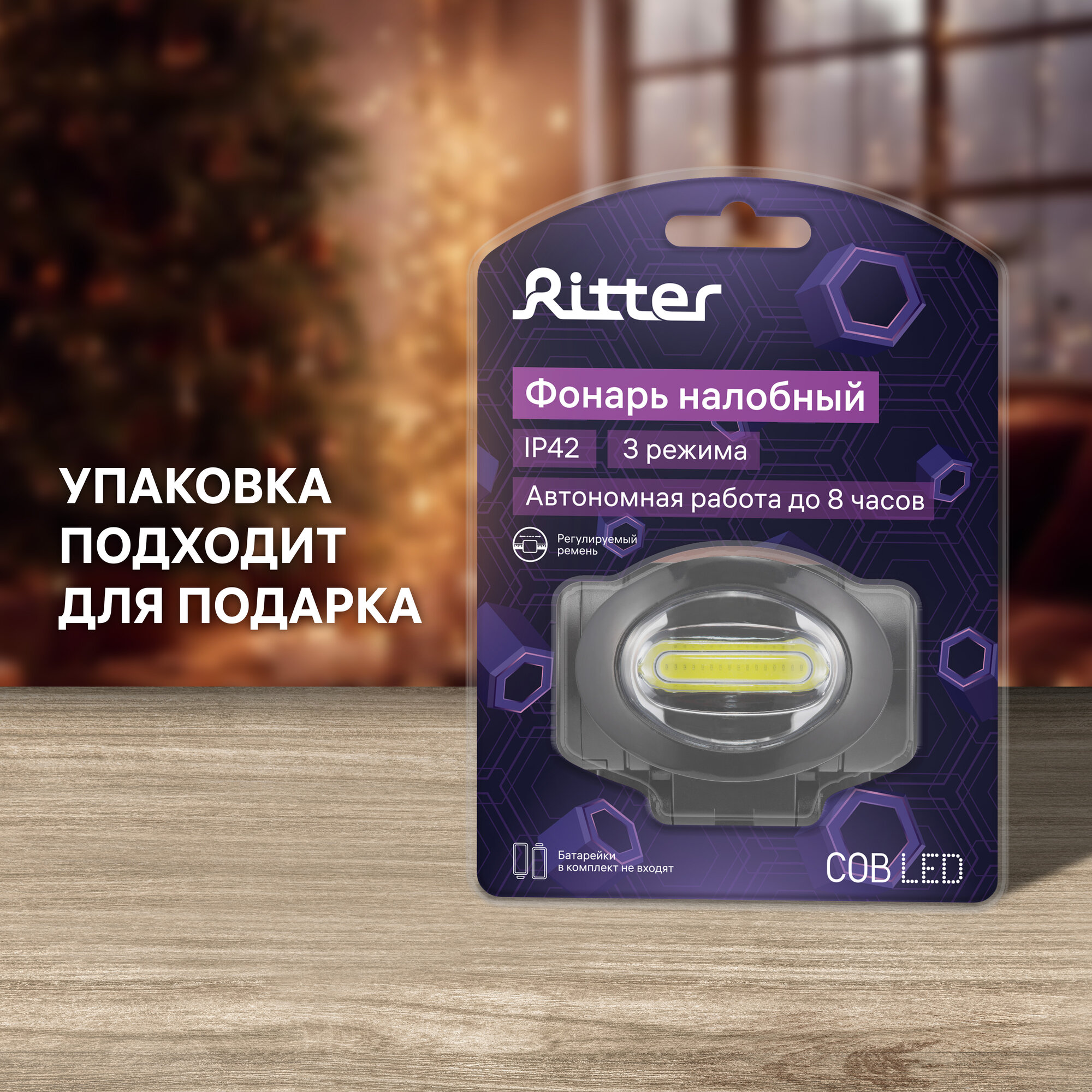 фонарь налобный светодиодный RITTER Headlight 5Вт COB LED 3xAAA черный (29089 6)