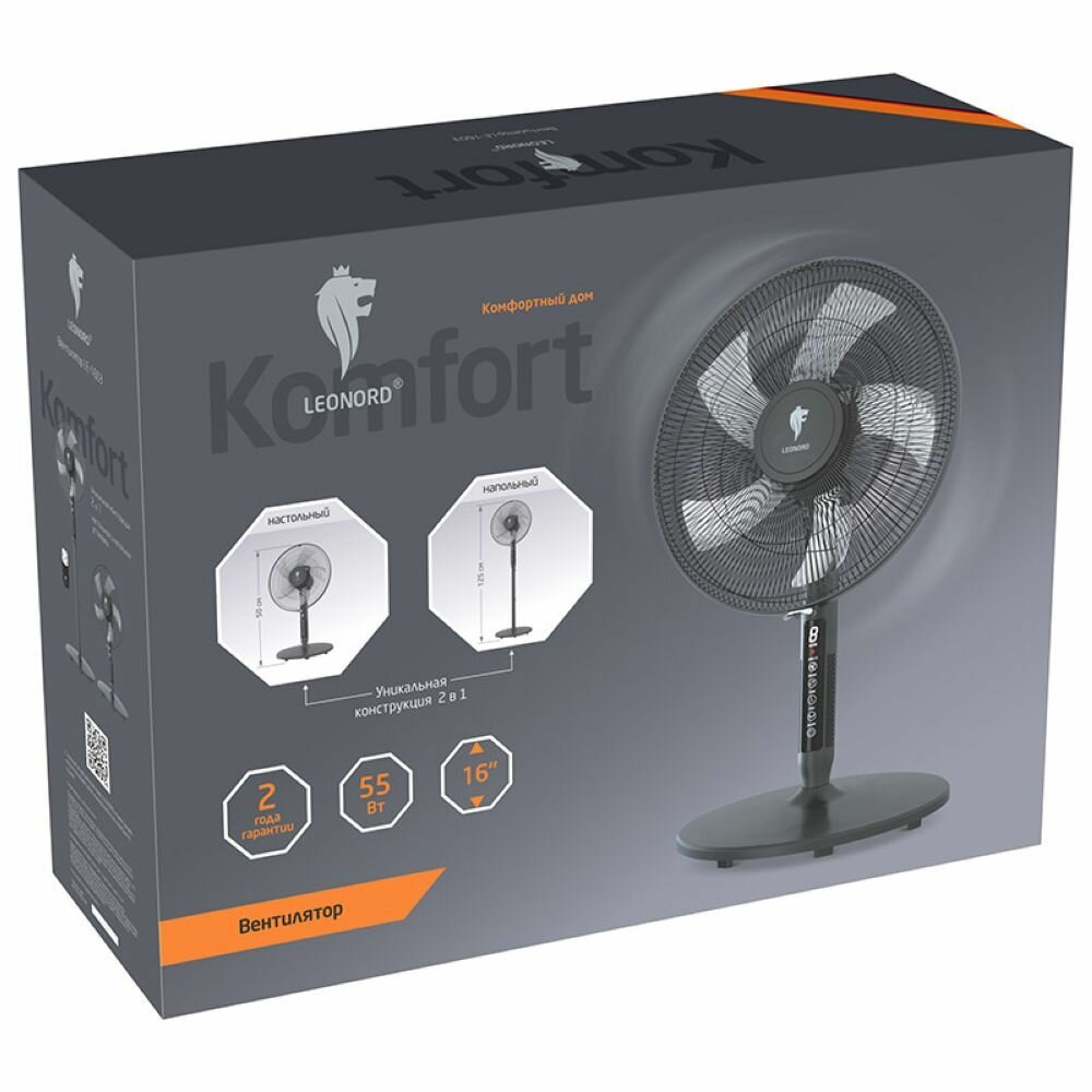 вентилятор напольный LEONORD LE-1603 2в1 55Вт 3 режима черный