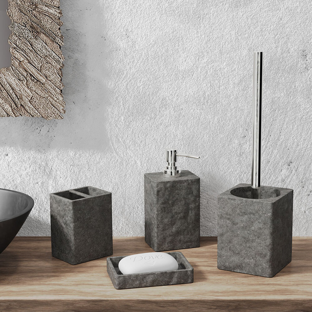 Стакан настольный Stone Blackот производителя Fora изготовлен из экологичного, прочного и стойкого к влажности материала полирезин. Аксессуар используется для хранения зубных щеток, пасты и бритв. Благодаря стильному дизайну изделие черного цвета отлично вписывается в интерьер современной ванной комнаты. Основные преимущества настольного стакана Stone Black • выполнен из прочного материала полирезин, долго служит; • гладкая структура поверхности обеспечивает устойчивость к развитию бактерий; • легко очищается водой и позволяет компактно хранить несколько гигиенических принадлежностей в одном месте; • современный дизайн изделия придает завершенность образу ванной комнаты. Создайте гармоничную композицию, дополнив интерьер другими аксессуарами серии Stone Black бренда Fora.