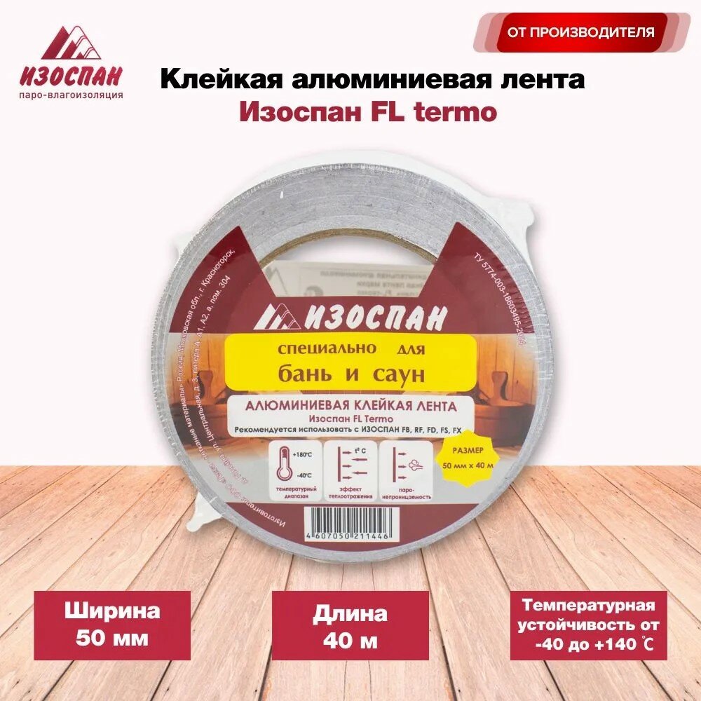 Лента состоит из алюминевой фольги, силиконовой бумаги и клеевого слоя. Предназначена для герметизации и соединения между собой полотнищ металлизированной пароизоляции. Монтаж рекомендуется проводить при комнатной температуре на сухую и чистую поверхность. Благодаря своему составу изоспан ''FL termo'' может применяться в помещениях с повышенной температурой.