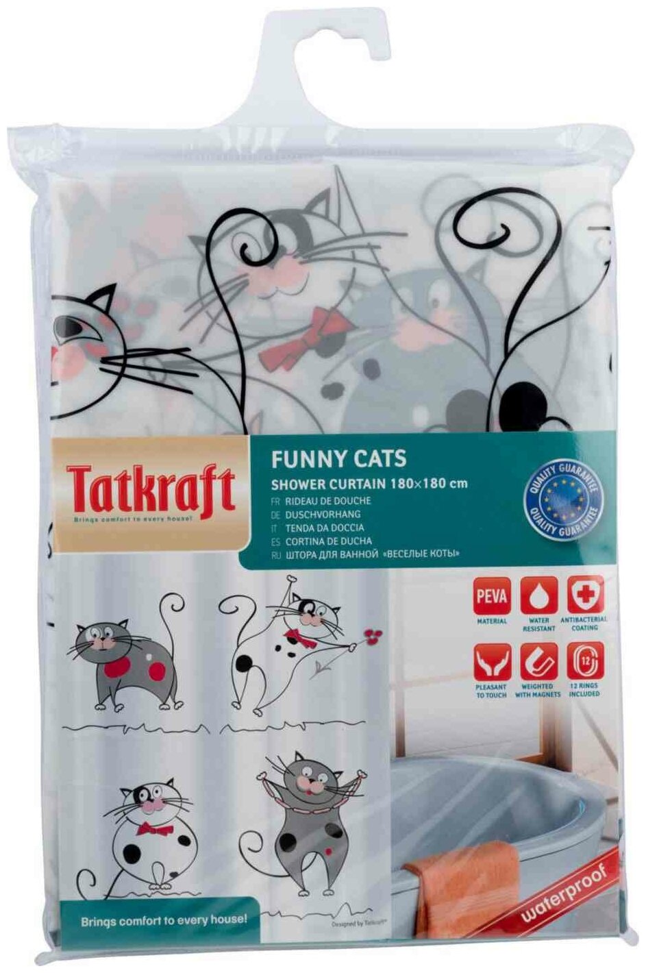 занавеска для ванной FUNNY CATS 180х180 см PEVA Tatkraft (14022)