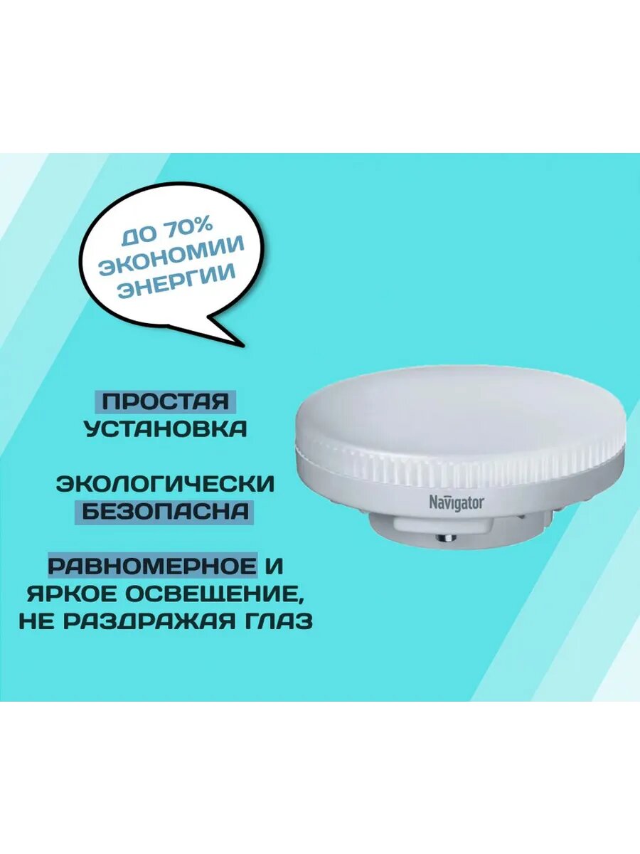 Cветодиодные энергосберегающие лампы общего освещения Navigator серии NLL-GX53. Предназначены для использования в любых типах светильников с цоколем GX53. Лампа имеет Высокую эффективность - 85 лм/Вт, надежные светодиоды Epistar, радиатор из композитного материала на основе теплорассеивающего пластика и алюминия, что способствует увеличению срока службы лампы.