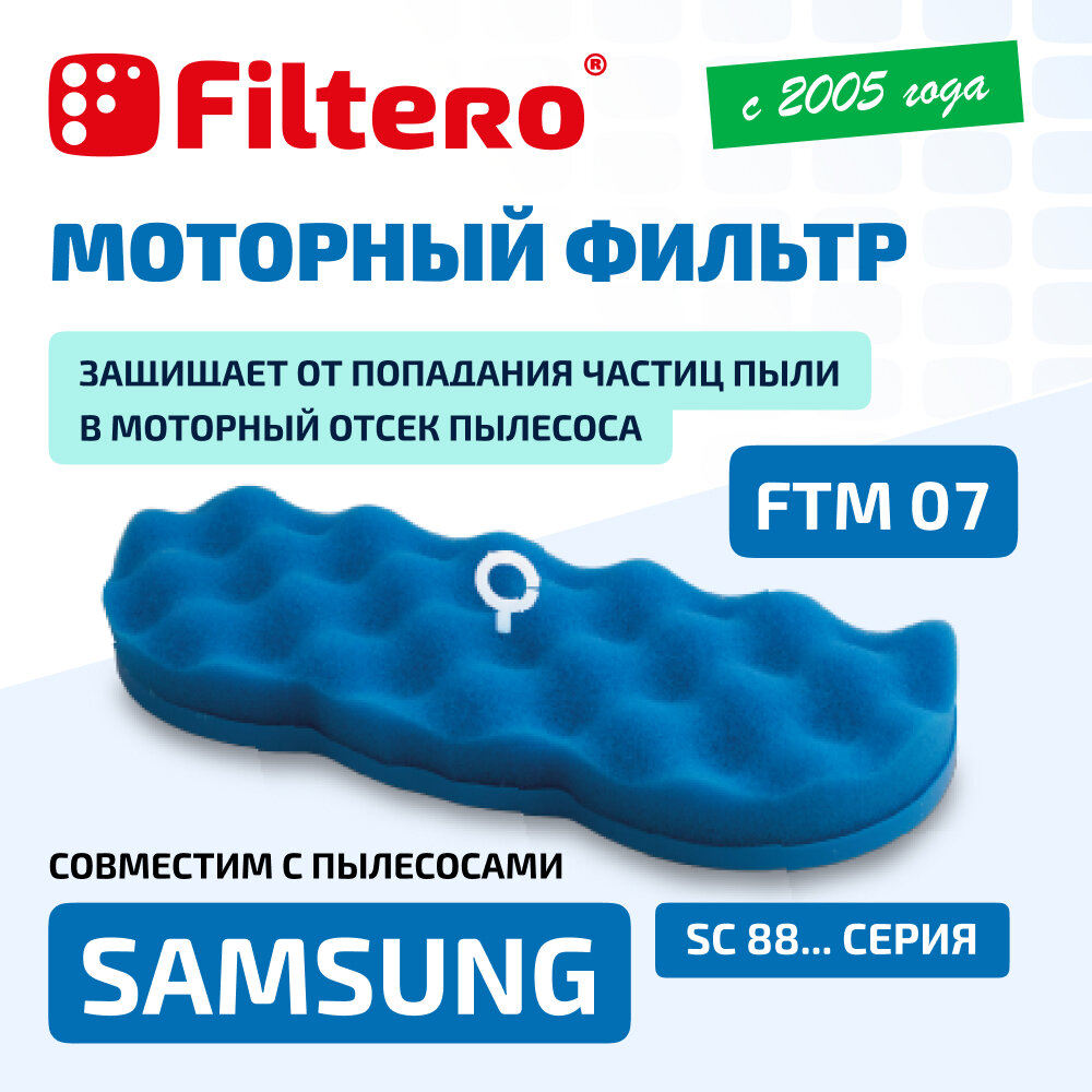 Комплект моторных фильтров ''Filtero FTM 07''. Защищает от попадания крупных частиц пыли в моторный отсек пылесоса. Промывать согласно инструкции к пылесосу. Подлежит замене, согласно рекомендации производителя пылесосов - не реже одного раза за 6 месяцев.