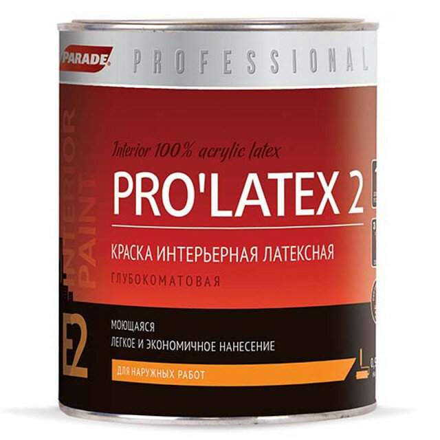 краска латекс. PARADE PRO'LATEX Е2 база А глубокомат. 09л арт.краскаЕ2б.А09л (0005911)