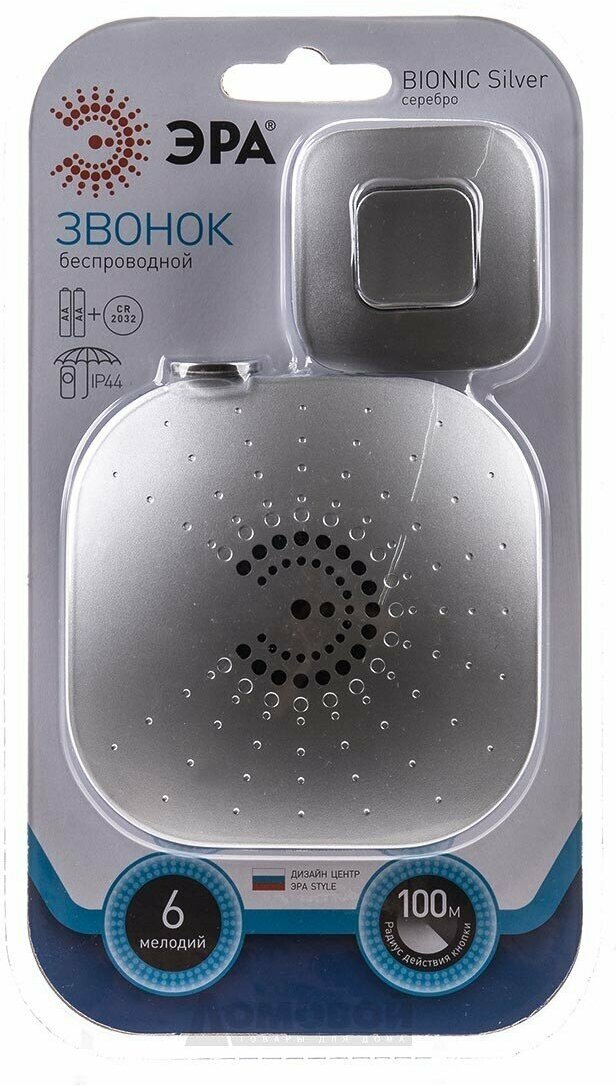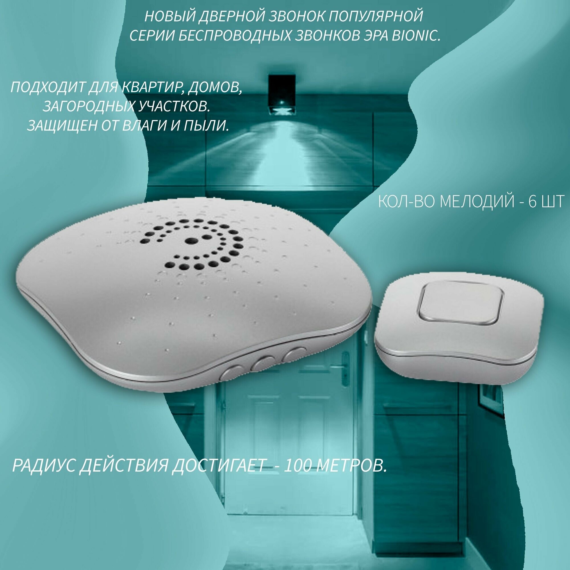 Беспроводной звонок ''Эра Bionic'' предназначен для использования в качестве дверного звонка или устройства внутреннего вызова. Может крепиться на двусторонний скотч или шурупы. Универсальный дизайн, компактность и простота установки позволяют использовать звонок в квартире, загородном доме и в офисе.
