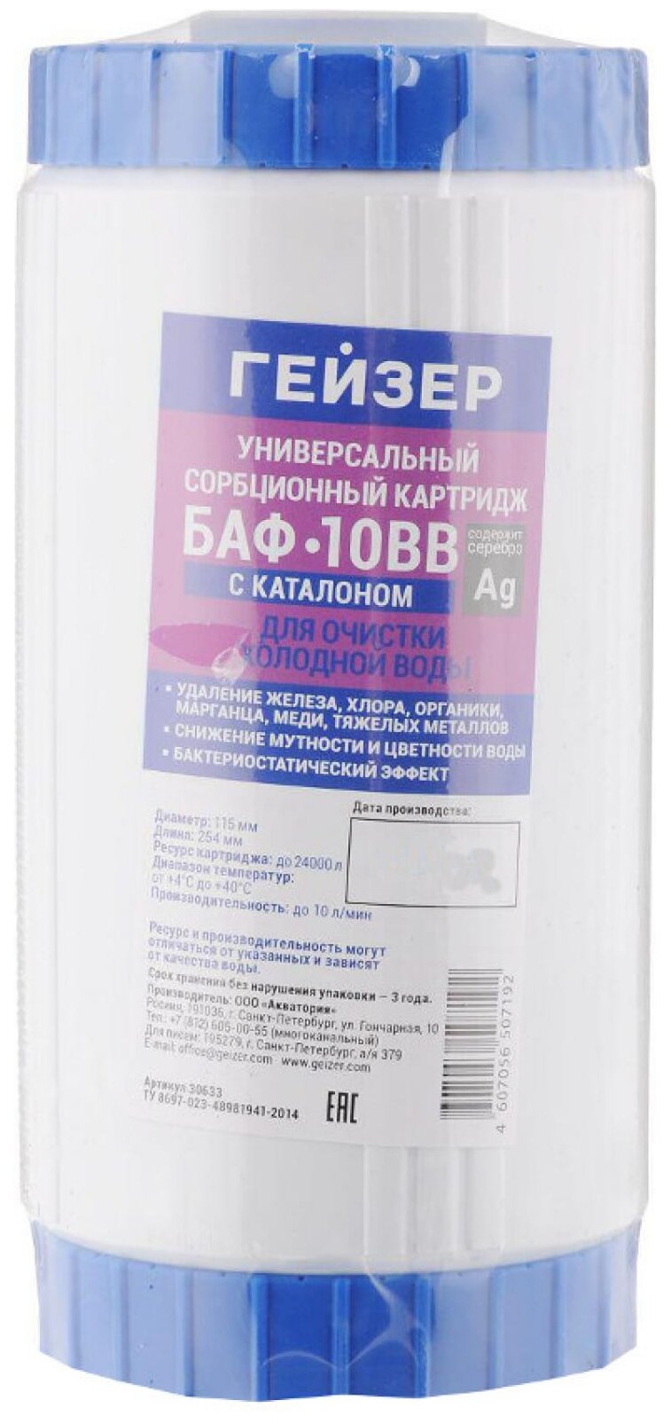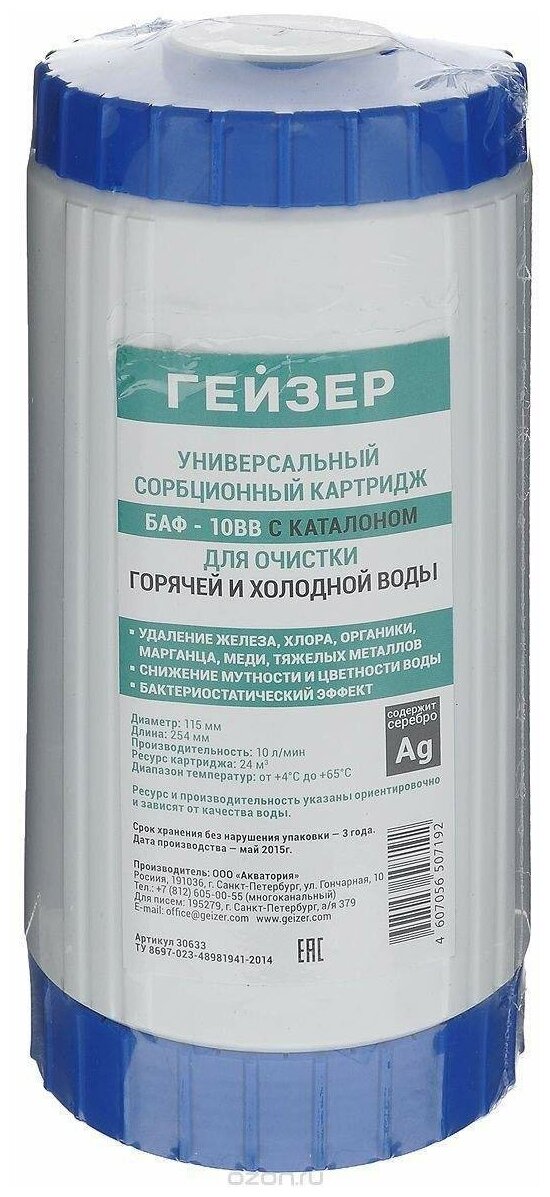 модуль сменный фильтрующий ГЕЙЗЕР БАФ Ag 10ВВ универсальный с каталоном (30633)
