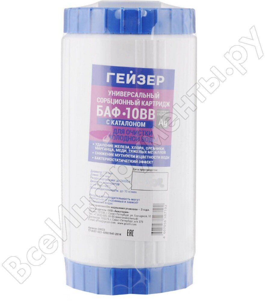 Сервис сравнения цен СкидкаГИД предлагает сравнить цены на товар «модуль сменный фильтрующий ГЕЙЗЕР БАФ Ag 10ВВ универсальный с каталоном (30633)»