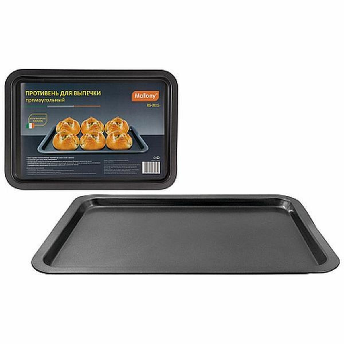 Противень равномерно и быстро прогревается, что способствует лучшему пропеканию пищи. Его легко чистить. Готовая выпечка без труда извлекается. Антипригарное покрытие исключает необходимость использования большого количества масла. Подходит для мини печей и духовок. Используется для запекания пищи в фольге, на бумаге для выпекания, а также непосредственно на противне (в данном случае рекомендуем использовать небольшое количество масла). Прост и удобен в использовании. Не изменяет цвет и вкус пищи. Толщина стали: 0,4 мм.