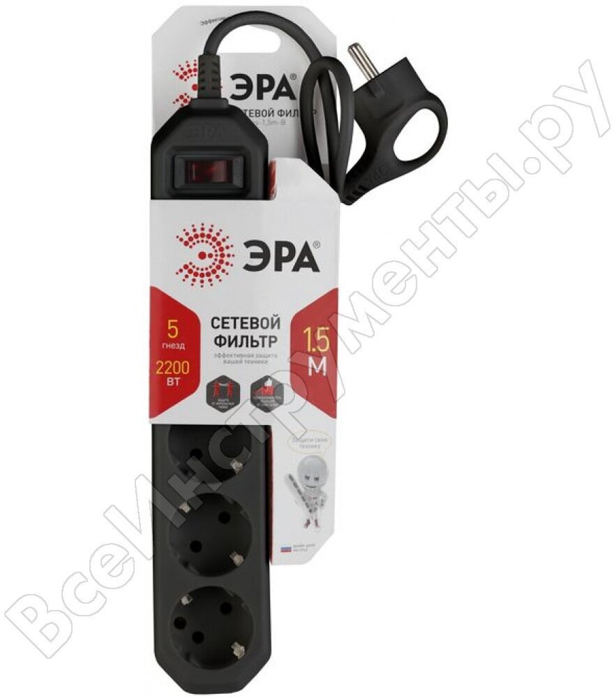 сетевой фильтр ЭРА USF-5es-1.5m-B с/з 3x075мм кв с выключателем (Б0019032)