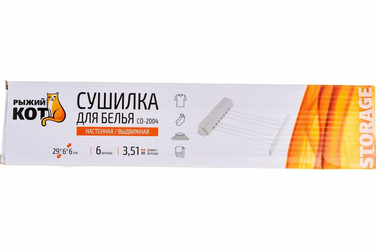 сушилка для белья РЫЖИЙ КОТ 6 нитей по 366м настенная выдвижная (998422)