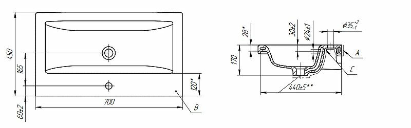раковина CERSANIT Como для тумбы Анна 70 70 см (S-UM-COM70/1-w)