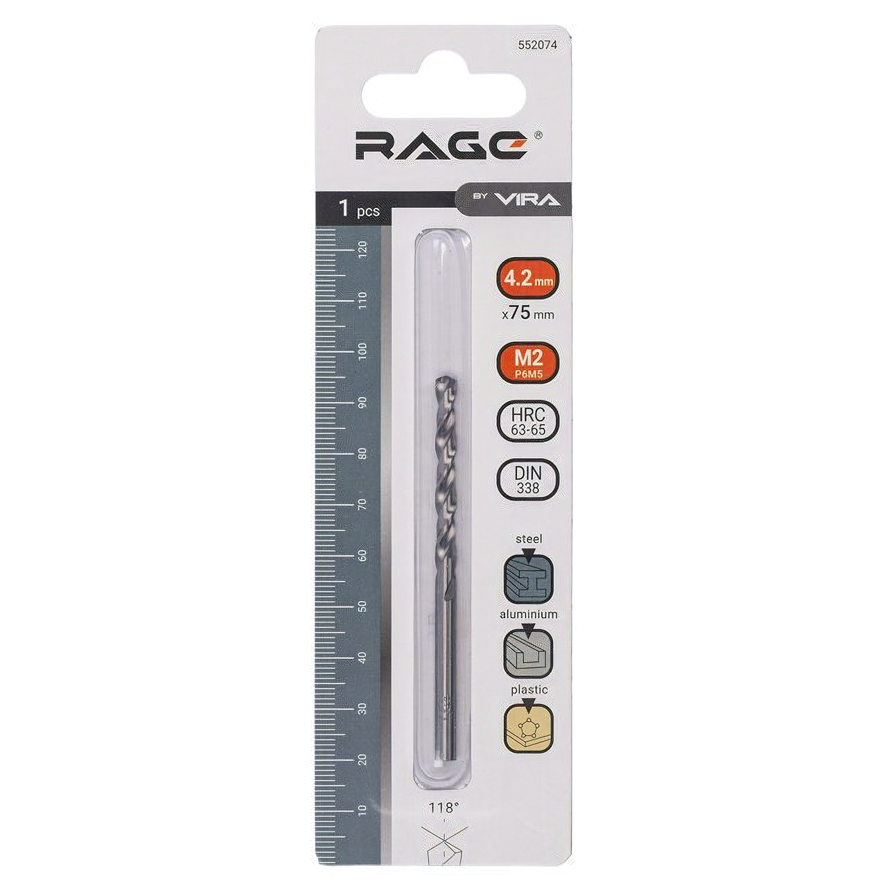 Сверло по металлу предназначено для эффективного сверления отверстий в легированной и нелегированной сталях ковкого чугуна, в металлокерамике, мельхиоре, меди, бронзе и, в особенности, в твердых пластмассах, например, плексигласе. Сверло выполнено из высококачественной стали M2 твердости 63-65HRC, которое увеличивает износостойкость инструмента. Данная линейка ''Vira'' оптимизирована для профессионального использования. Сверло выполнено в соответствии с наивысшими европейскими стандартами согласно норме DIN 338. Благодаря этому, сверло способно выдерживать высокие нагрузки в течение продолжительного времени.