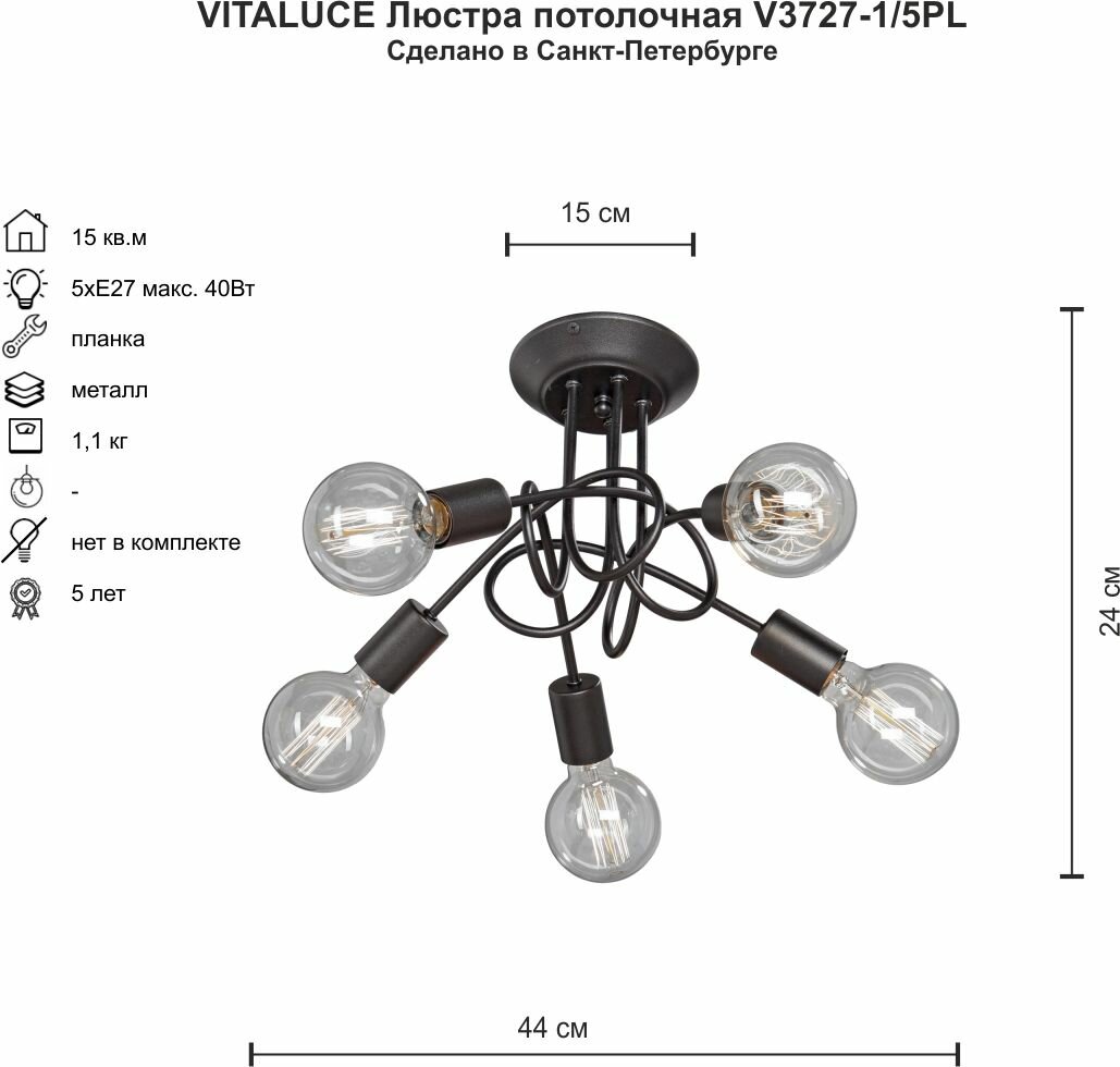 люстра потолочная VITALUCE Pola 5х60Вт Е27 металл черная (V3727-1/5PL)