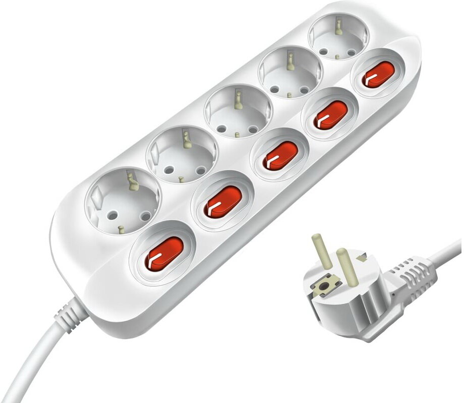 Сетевой удлинитель, который подходит для оснащения питанием рабочего места в офисе либо в домашних условиях. Рассчитан на подключение до пяти электроустройств максимальной суммарной мощностью 3500 Вт. Удлинитель оснащен удобными выключателями питания на каждое сетевое гнездо. Сетевой удлинитель при малой длине кабеля в 1,5 метра удобно использовать для подключения стационарных электроприборов, размещенных на небольшой площади. Каждое гнездо оснащено выключателем для отдельного отключения одного электроприбора, без отсоединения удлинителя от сети. Данное решение удобно в случае труднодоступности сетевой розетки. Удлинитель укомплектован заземлением, которое позволяет избежать поражения электрическим током и короткого замыкания. Разъемы закрыты специальными шторками, ограничивающими попадание пыли и мелких частиц на контакты. Материал корпуса выполнен из ударопрочного поликарбоната, относящегося к негорючим материалам. Корпус удлинителя не является разборным, поэтому электроприбор ремонту не подлежит. Кабель трехжильный, имеет сечение 1 кв.мм, выполнен из меди, для лучшей пропускной способности электрического тока. Эластичная муфта на соединении провода и корпуса, предохраняет токопроводящие жилы от излома.