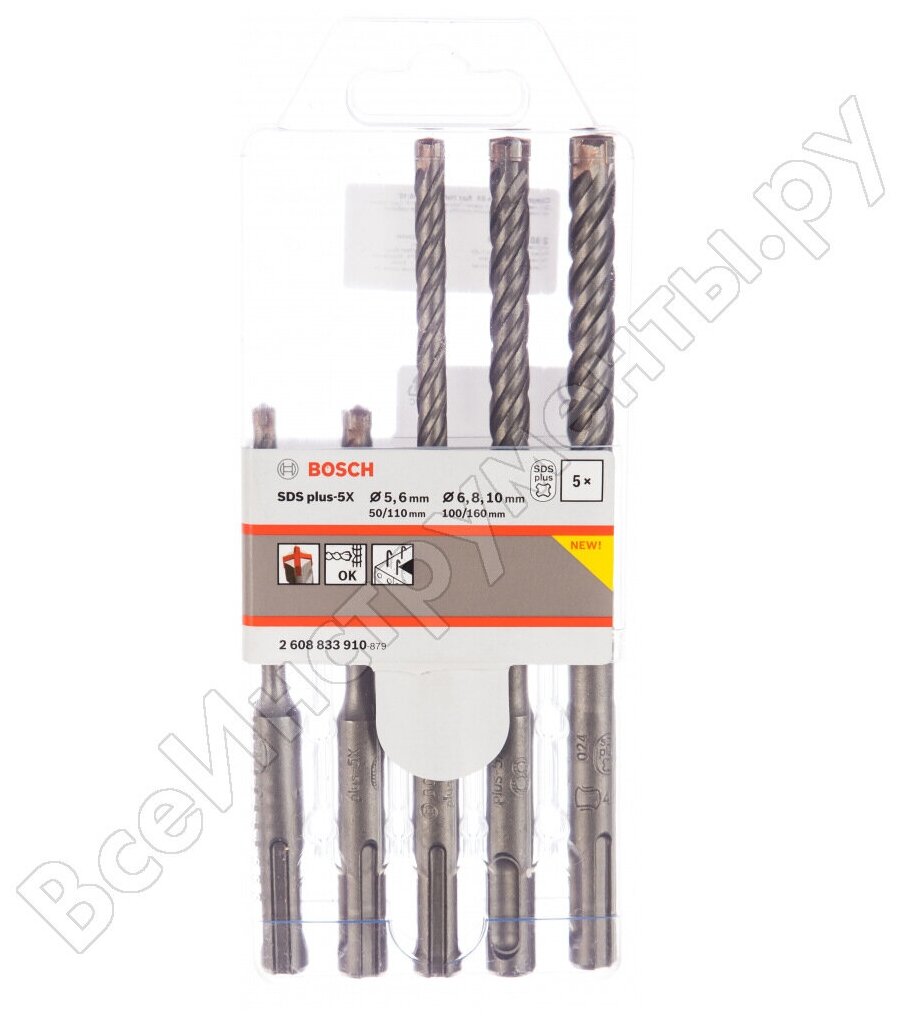 набор буров BOSCH SDS-plus-5X 5-10мм 5шт (2608833910)