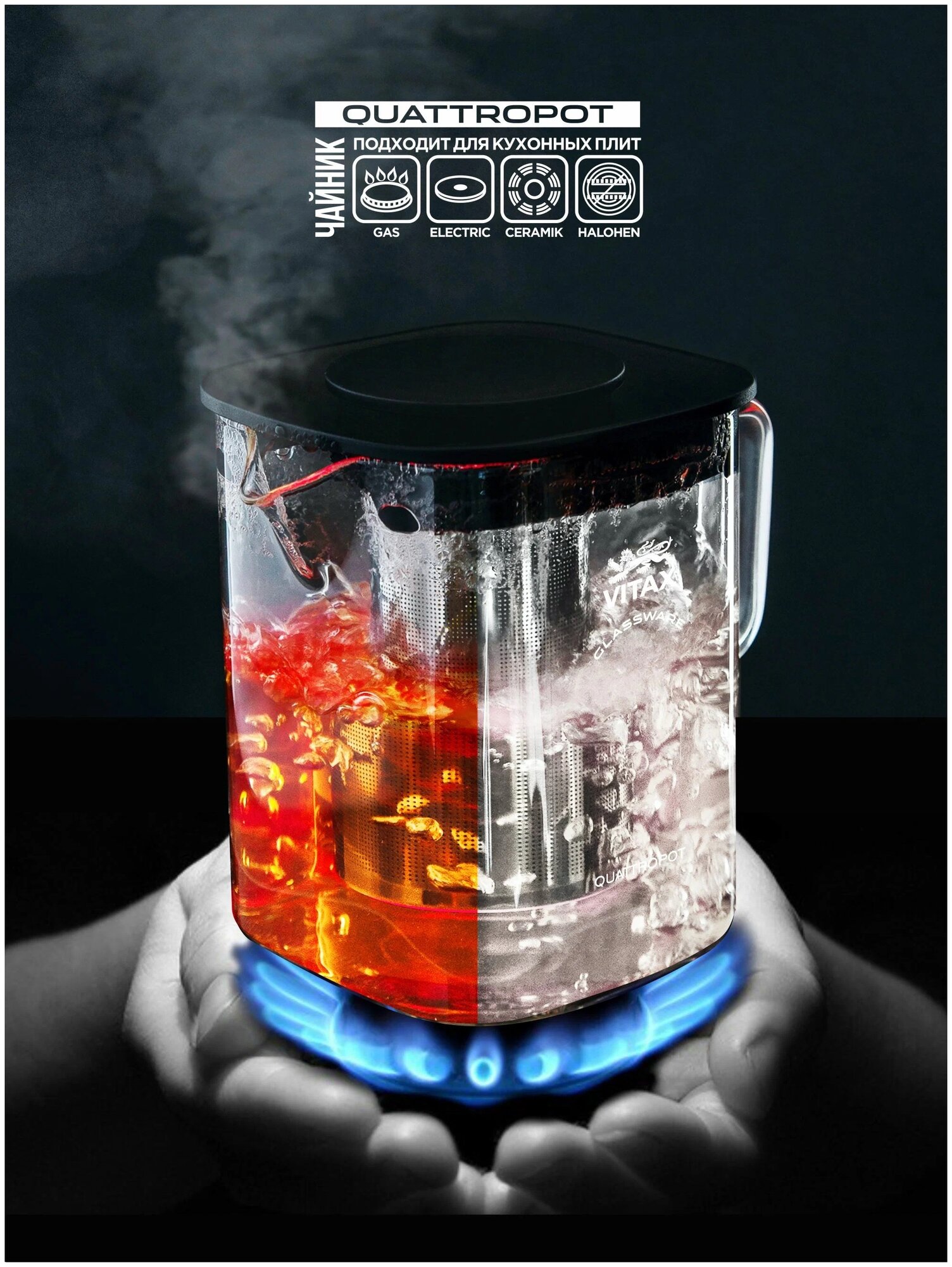 чайник заварочный 4в1 VITAX Thirlwall 600мл термостекло пластик нерж.сталь силикон (VX-3306)