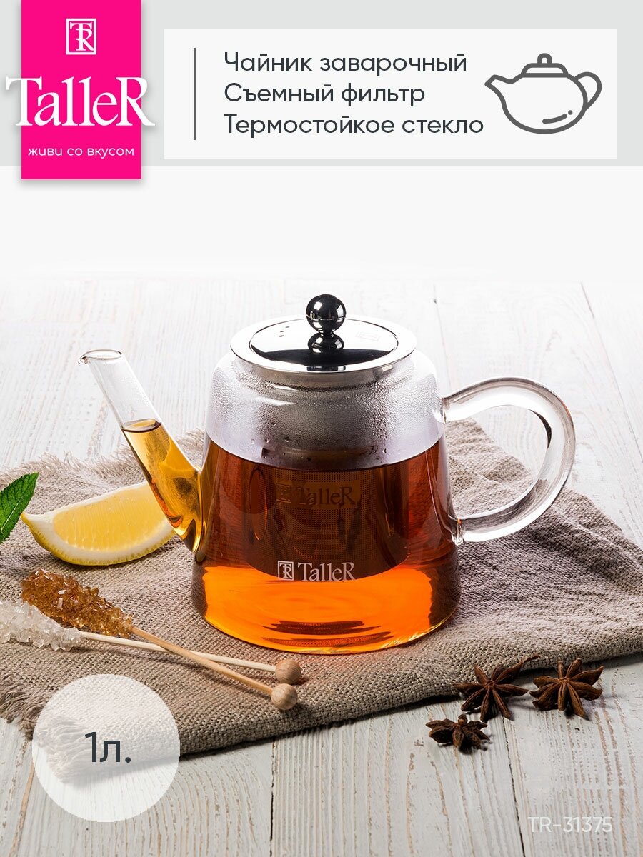 На сегодняшний день товар «чайник заварочный TALLER Эрилл 1л термостекло нерж.сталь (TR-31375)» можно купить с кешбеком в 1 магазине: МаксидоМ