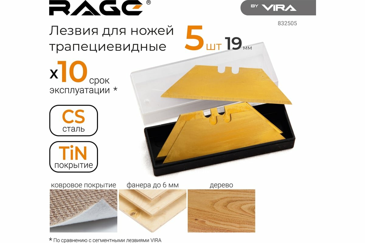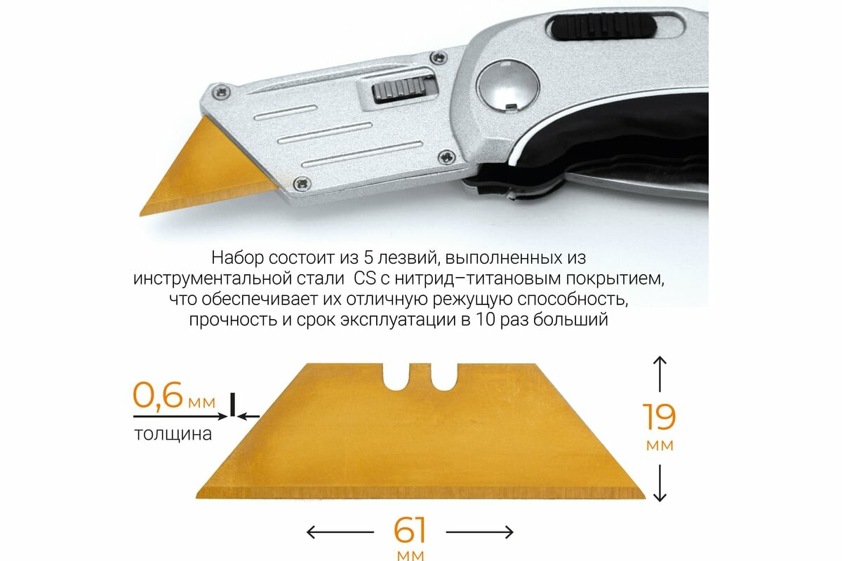 лезвие для ножа VIRA трапециевидное 19мм 5шт титан покрытие (832505)