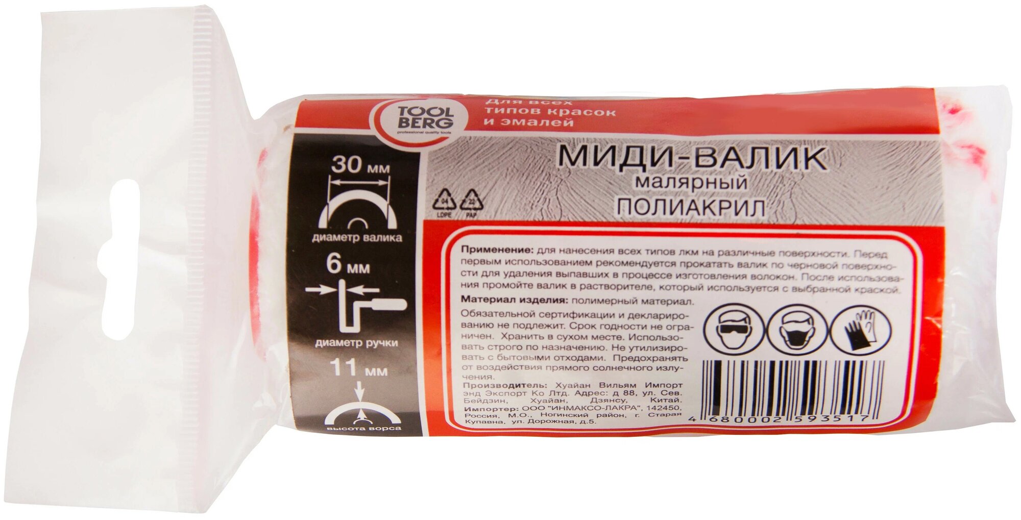 валик TOOLBERG полиакрил 100мм ворс 11мм отв.6мм арт.0404501