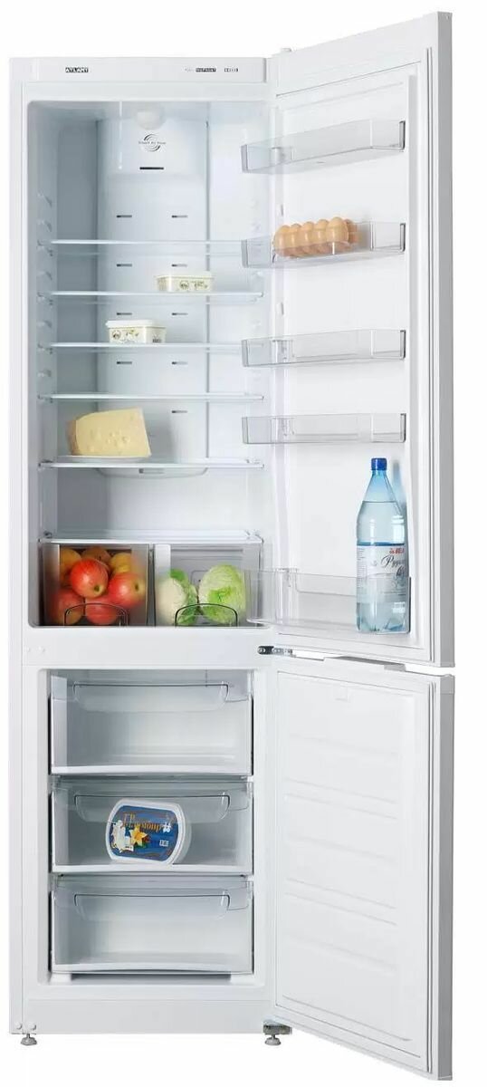 Холодильник ATLANT ХМ 4426-009 ND объемом 332 литра исполнен в классическом белом цвете. Он оснащен системой Full No Frost, которая дает возможность забыть о размораживании холодильника. Холодильное отделение укомплектовано 5 стеклянными полками, 4 из которых можно переставлять по высоте и 2 ящиками для овощей и фруктов. Морозильное отделение включает три больших прозрачных ящика для хранения различных продуктов.