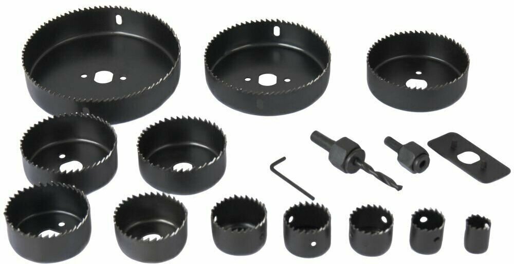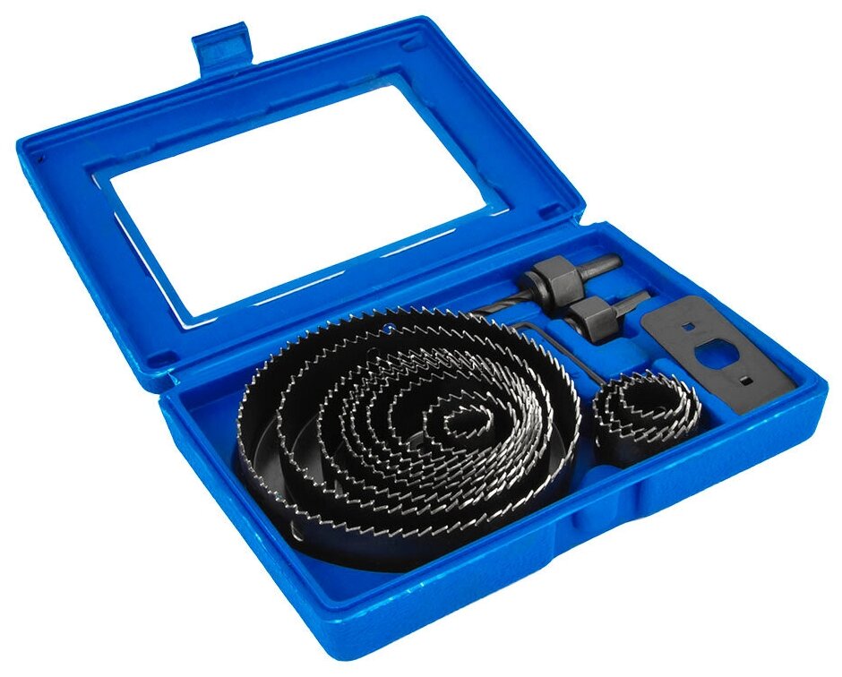 | Состав набора | -12 коронок: 19, 25, 32, 35, 40, 51, 60, 68, 72, 82,102,127 мм; -2 адаптера; -Ведущая пластина; -Ключ |