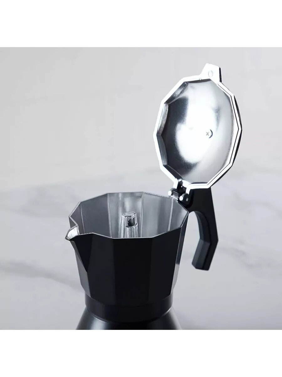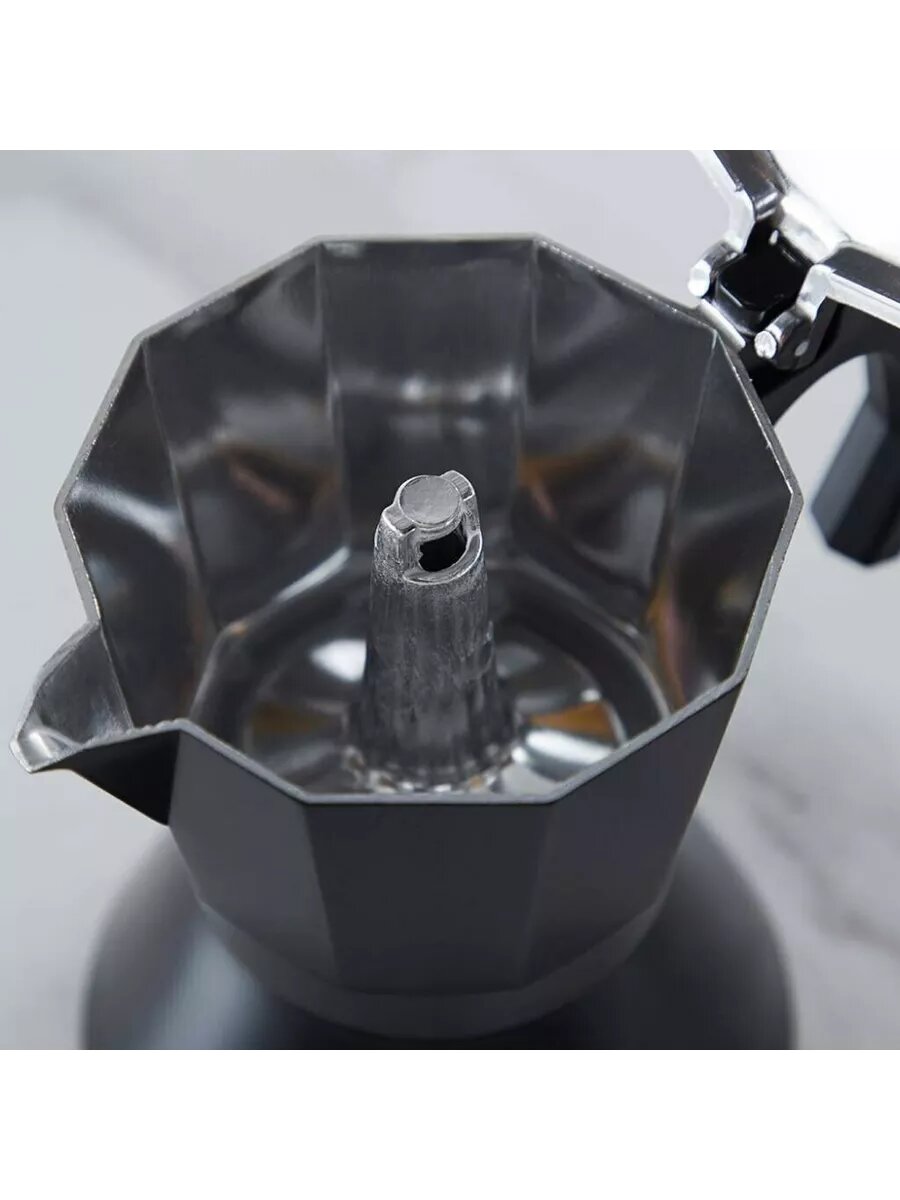 Кофеварка предназначена для использования на газовых, электрических, индукционных и керамических плитах. Напиток заваривается путем прохождения горячей воды через молотый кофе. Ручка кофеварки выполнена из пластика и не нагревается во время приготовления кофе. Объем: 300 мл. Материалы изготовления: алюминий, нержавеющая сталь 18/0, пластик PP.